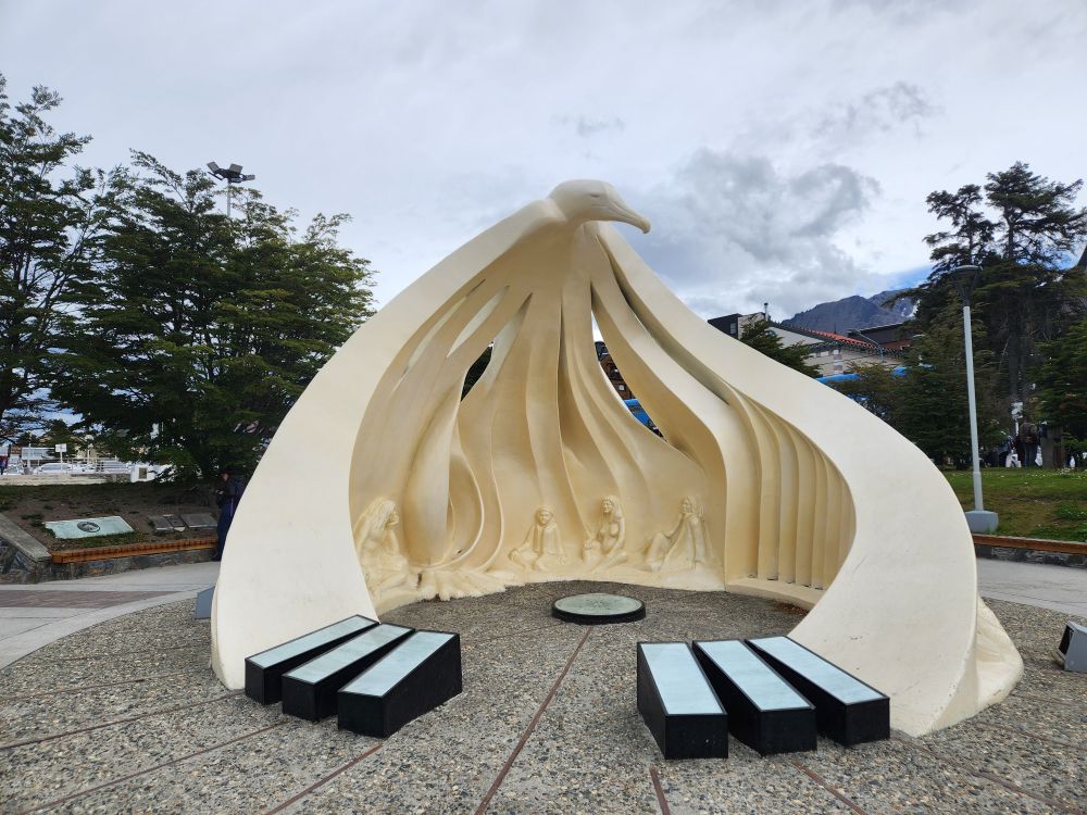 We arrive into Ushuaia early, thank you Captain, which gives us some time to wander about and see the sights before heading back to the ship for our excursion. We are off first thing, heading toward the Antiguos Pobladores statue, meant to resemble an albatross which is the city’s symbol.