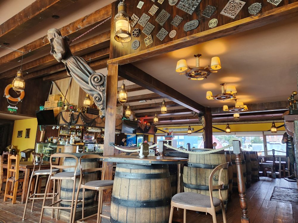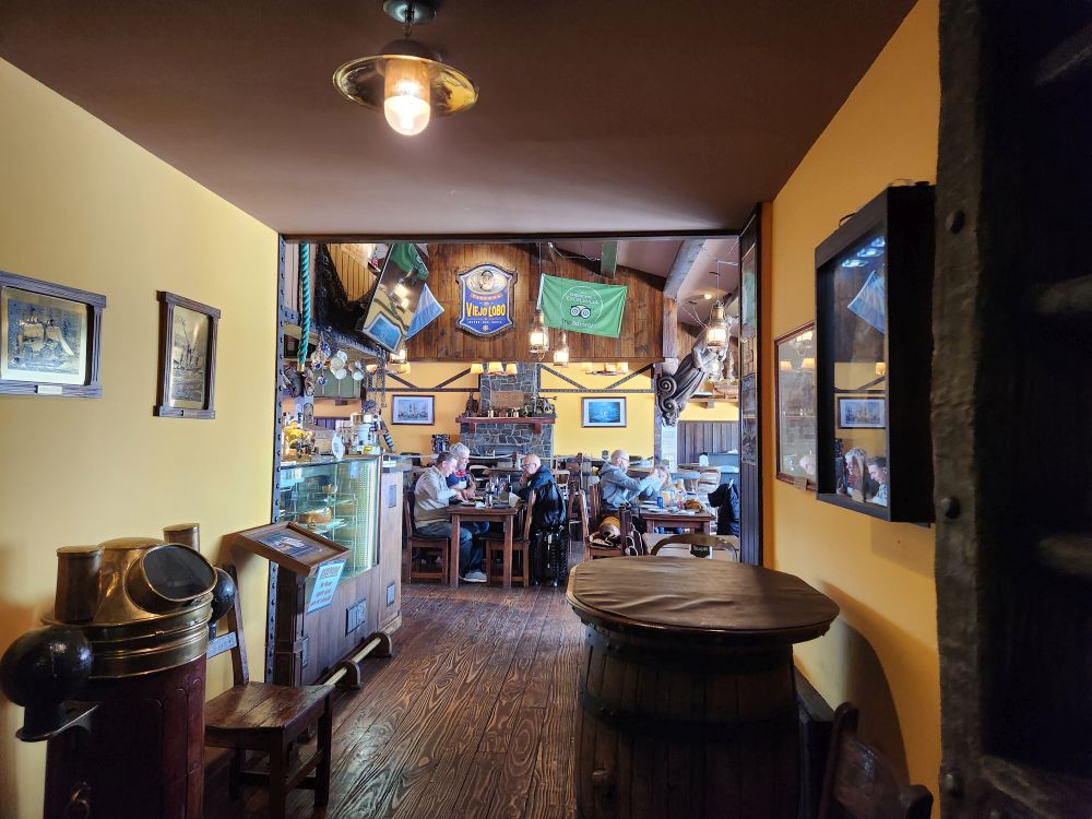 A quick tour through the artisan market – nothing we’re interested in buying – and we are back on the streets, retracing our stay here in 2011 by finding all the different restaurants where we dined! As it is still so early, many places aren’t open yet, but we do end up finding a quirky place called La Taberna del Viejo Lobo, the Old Wolf’s Tavern, located above the prison museum (which we didn’t have time to visit).