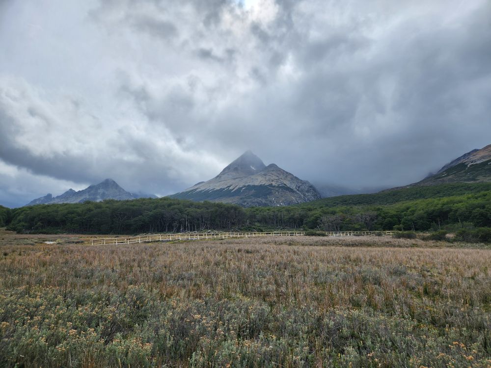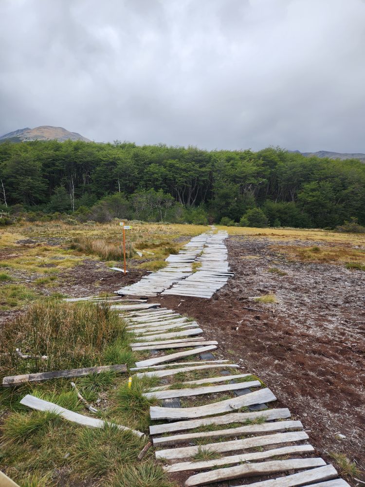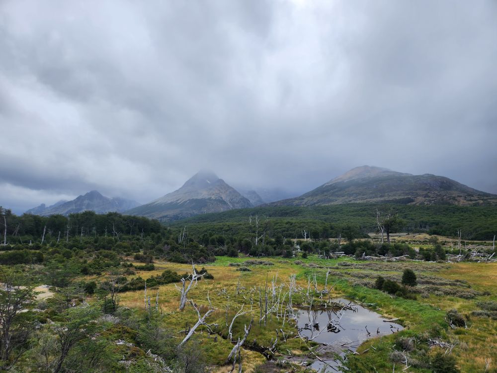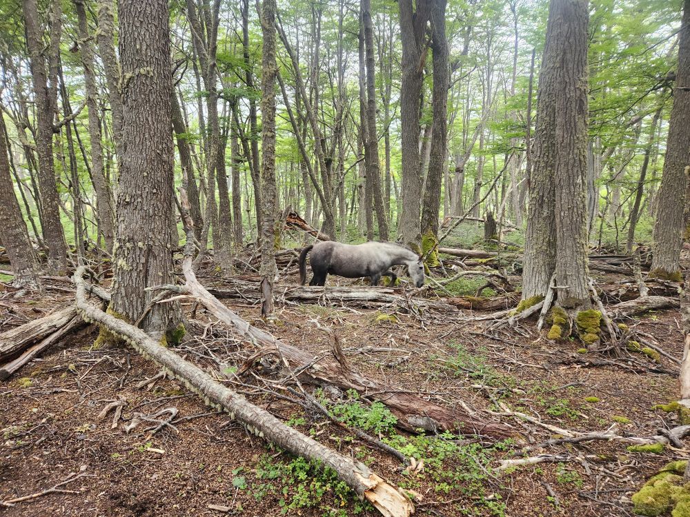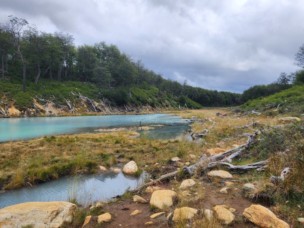 Mariana goes on to explain about the forest, full of high deciduous trees called lenga in Spanish. She also goes into more detail about the animals found in the forest – most introduced here (as mentioned previously). There are 2 types of fox, the grey fox was introduced to eat rabbits, but they found that the grey fox didn’t like to eat the rabbits, so now they have an abundance of fox and rabbit. There is one native fox, and that is the red fox. You can sometimes see the fox in valley. There is a llama called Guanaca in the north part of the island that is native. And then there are mink, introduced from America, to establish a fur trade, but they ended up being short haired mink, so they aren’t any good for clothing. The beaver was introduced from Canada, again to try to establish a fur trade. But that didn’t really happen either and the beavers became invasive and have spread exponentially. They’ve caused millions of dollars of damage to the land and environment but are now virtually impossible to eradicate. Of course, on our trek we are going to specifically go to see the beaver dams, so they are sort of a tourist attraction now as well!