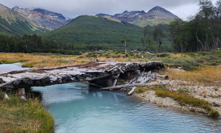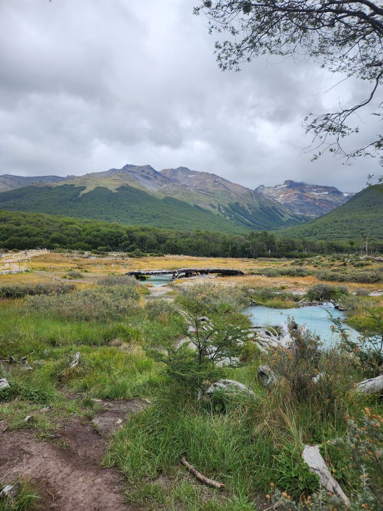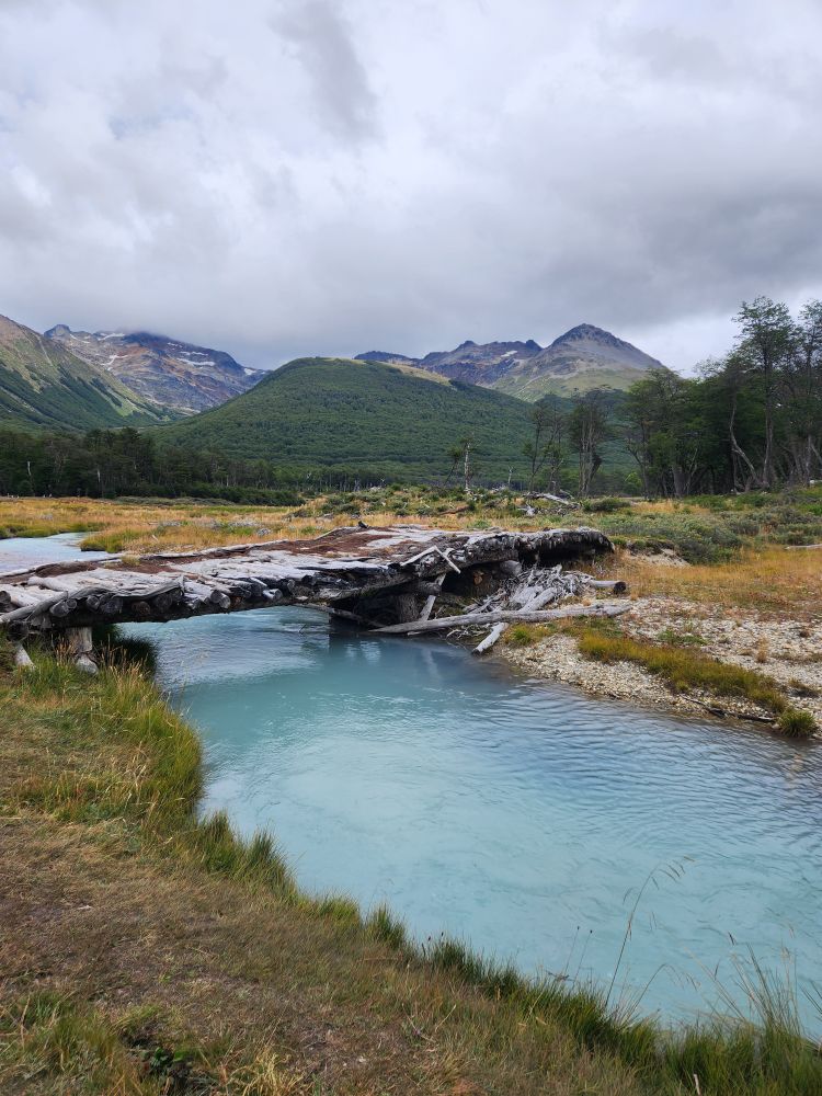 More stunning views ensue as we cross a wooden bridge on our way to a stream that runs from the Emerald Lagoon – which is a huge hiking destination.