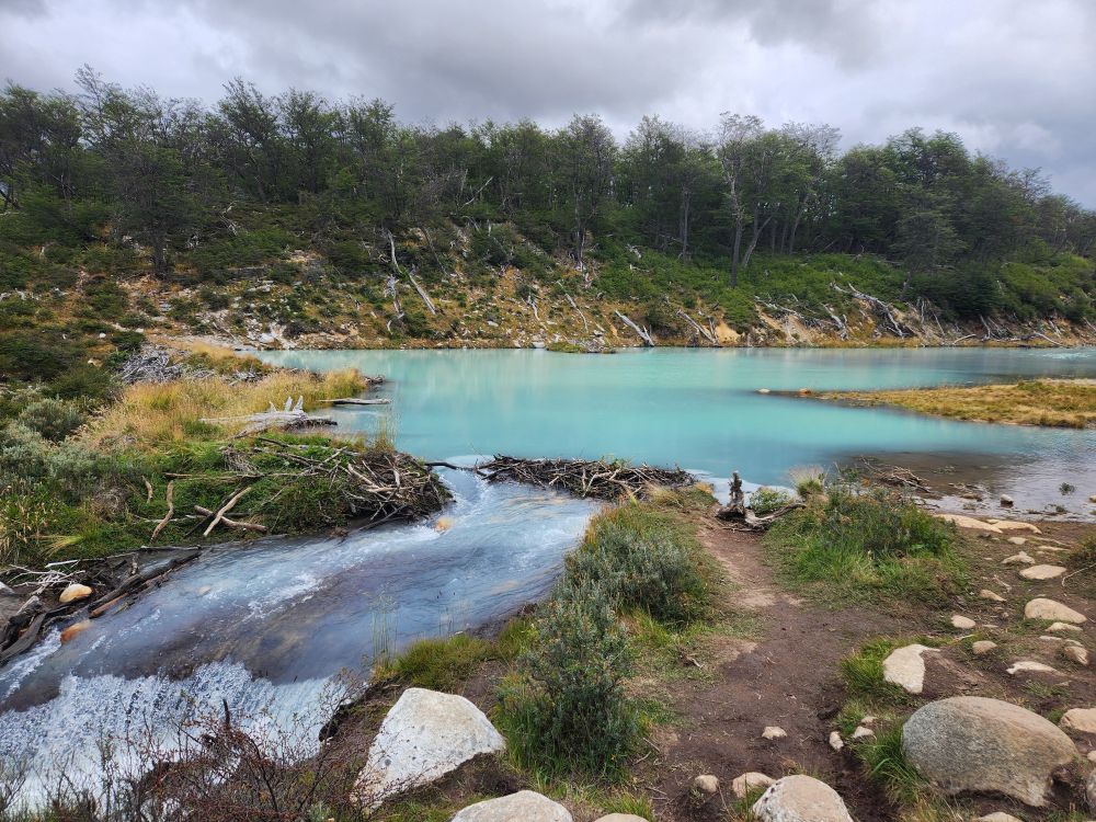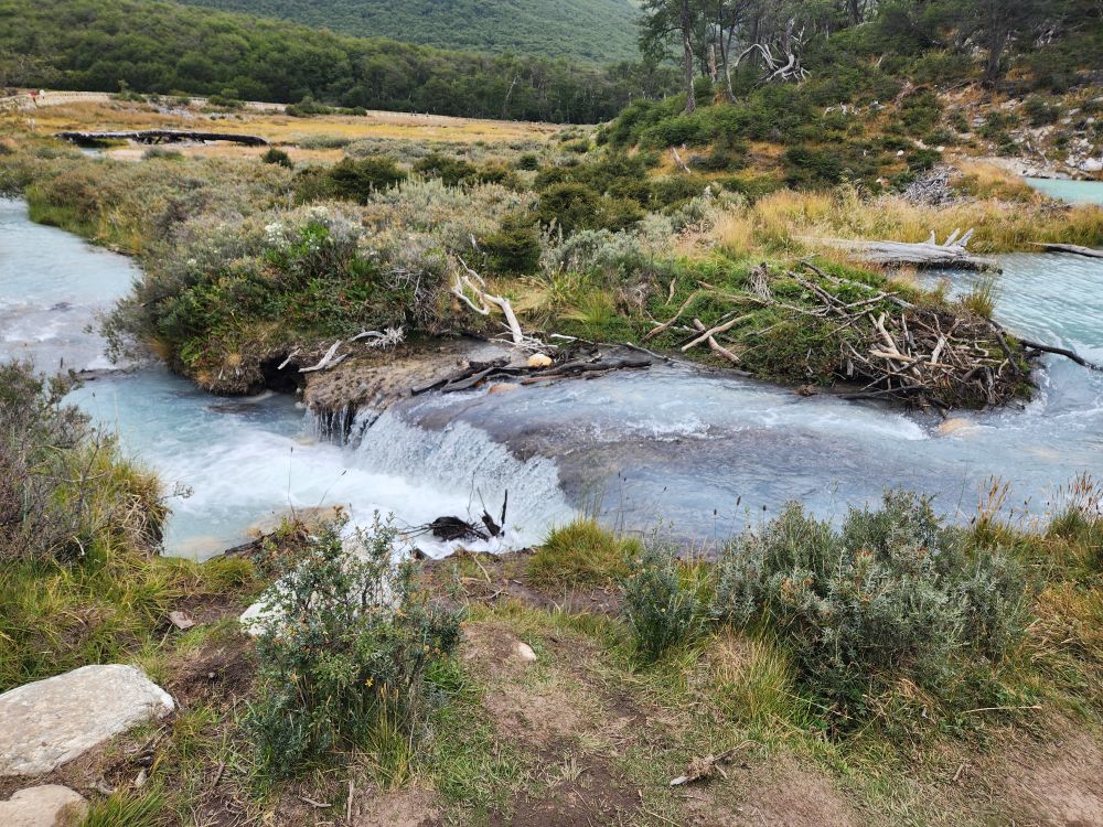 The stream is gorgeous – more azure than emerald in color – with a beaver dam and a little waterfall from the dam. Even though they are invasive, those beavers do make for great scenery!