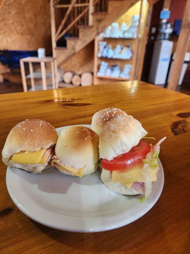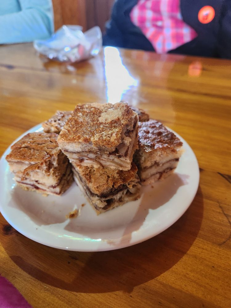 Coffee (thank you!), ham and cheese sandwiches and apple strudel await. We sit with some lovely Canadians and chat while we munch, then head back to the bus for our 25 minute ride back to the ship.