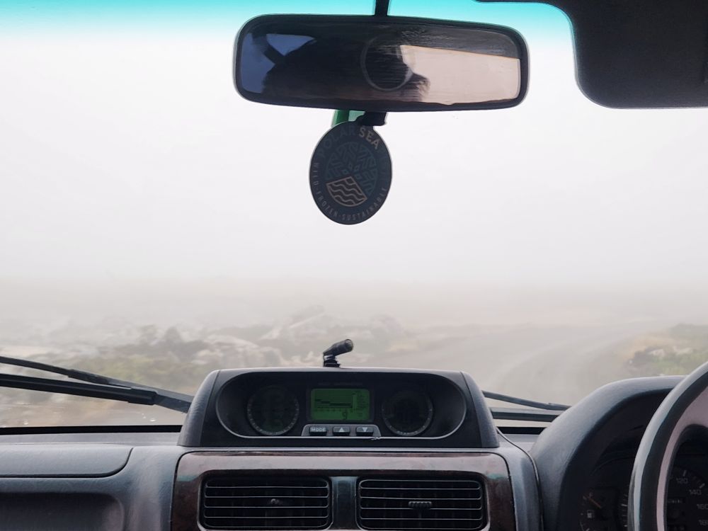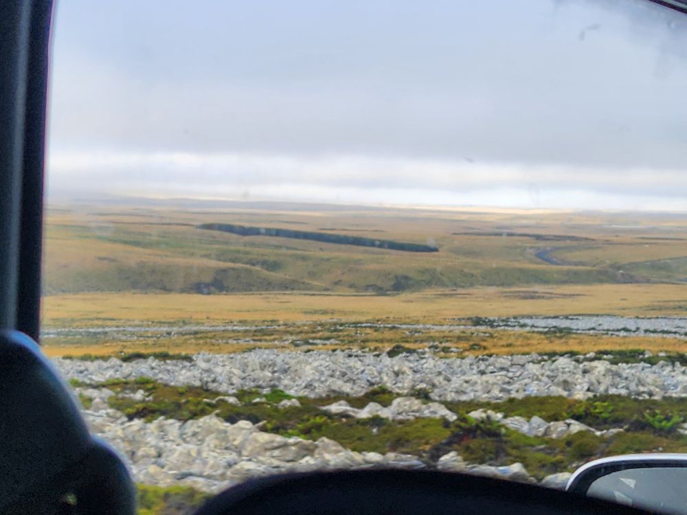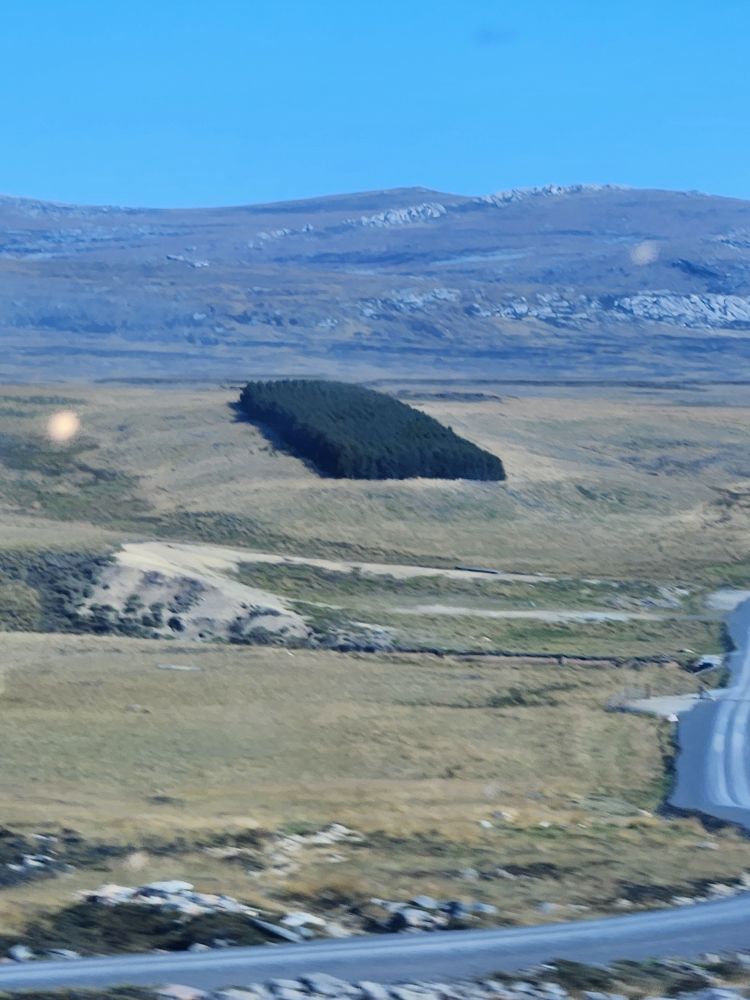 James points out different places along the way; the place where an Argentinian helicopter crashed during the war (can’t see it because of the fog), a sheep farmers house and the trees he planted (because there are literally no trees out here and people said you couldn’t ever grow trees, so he decided he would prove them wrong). While the trees did grow, unfortunately, as James points out, the farmer planted them too close together and so they won’t be able to grow any further and are choking out any new growth.