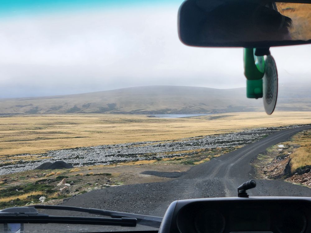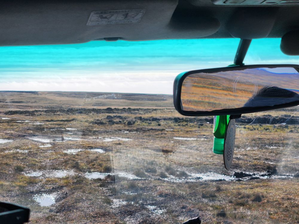 And now we also know why all the tours go in caravans! Because if you get stuck – you’re stuck. And as a matter of fact, one of our vehicles does get stuck and we have to wait until they can get it out of the muck before we can go on. You can see from the pictures – and the video (complete with James’ commentary on flights and Argentinean airspace) – how wide open and vast this area is! And apologies ahead of time for the pictures – we’re stuck in the back seat the entire trip and our windows don’t roll down, so everything is out the front windshield or a really dark tinted side window.