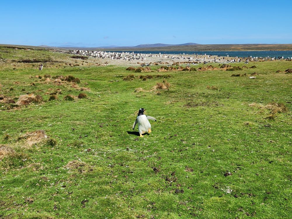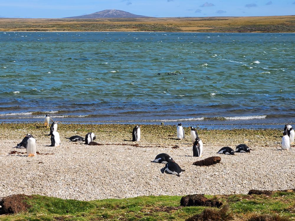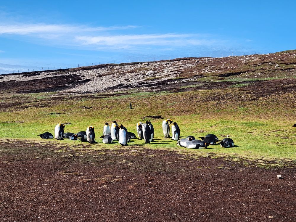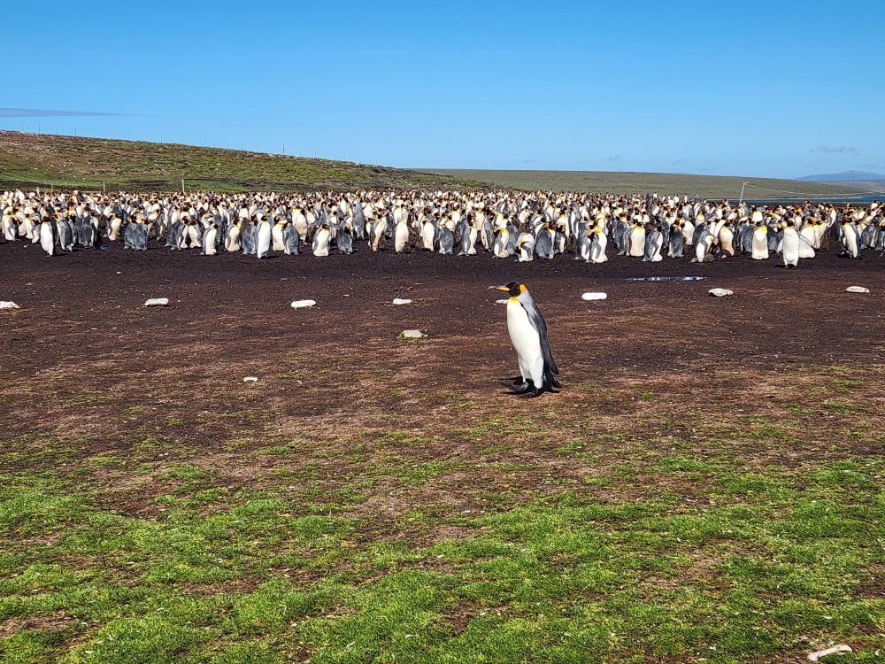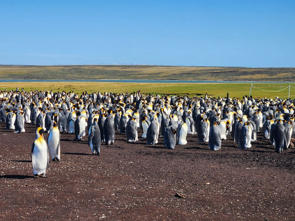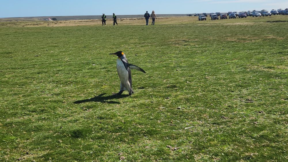 An hour and a half later we arrive at Volunteer Point for the penguins! There are about 50 other SUVs out here as well – but the space is so vast, it definitely doesn’t feel crowded. Cold as hell with that wind, but not crowded. At least not with people – just penguins! The last count, the number of birds was estimated at over 15,000. 3,000 King penguins, 7,000 Gentoos and about 5,000 Magellanic (or jack ass) penguins. And those counts are about 10 years old, so heaven only knows how many there are today.