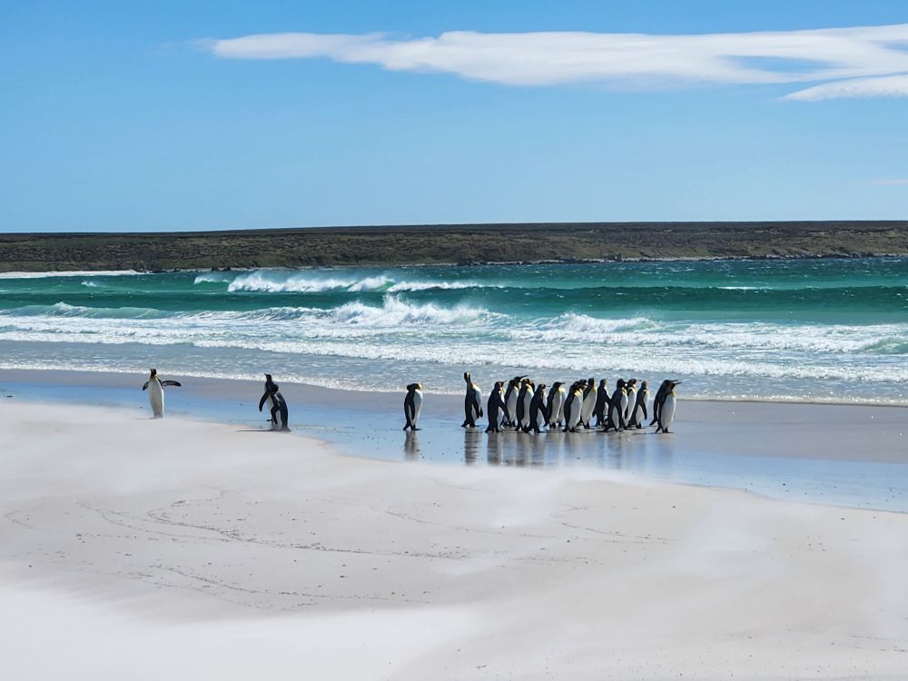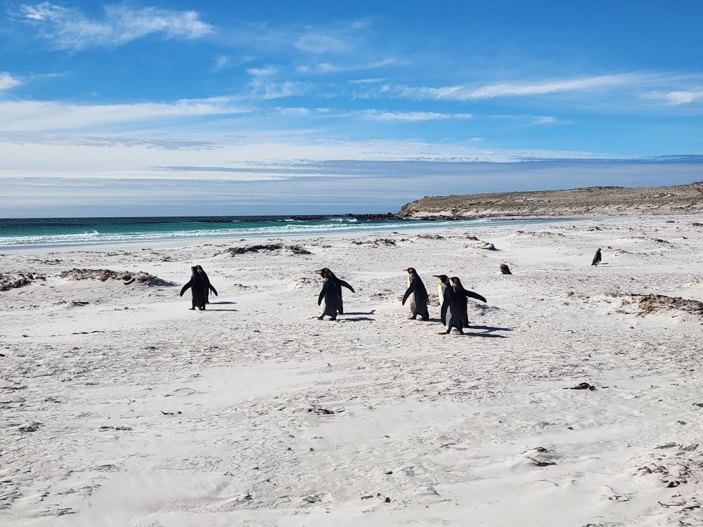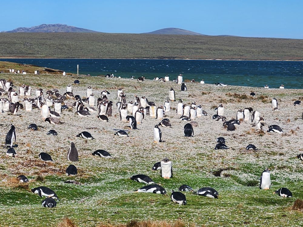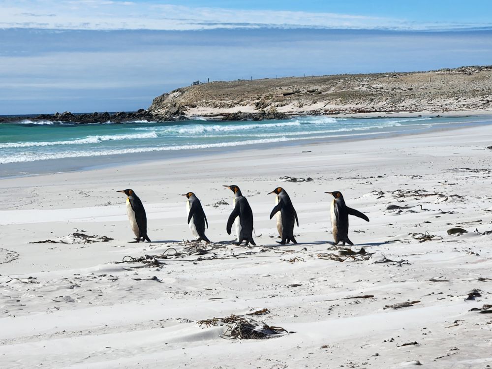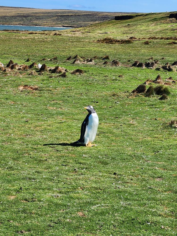 An hour and a half later we arrive at Volunteer Point for the penguins! There are about 50 other SUVs out here as well – but the space is so vast, it definitely doesn’t feel crowded. Cold as hell with that wind, but not crowded. At least not with people – just penguins! The last count, the number of birds was estimated at over 15,000. 3,000 King penguins, 7,000 Gentoos and about 5,000 Magellanic (or jack ass) penguins. And those counts are about 10 years old, so heaven only knows how many there are today.