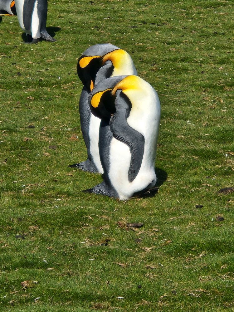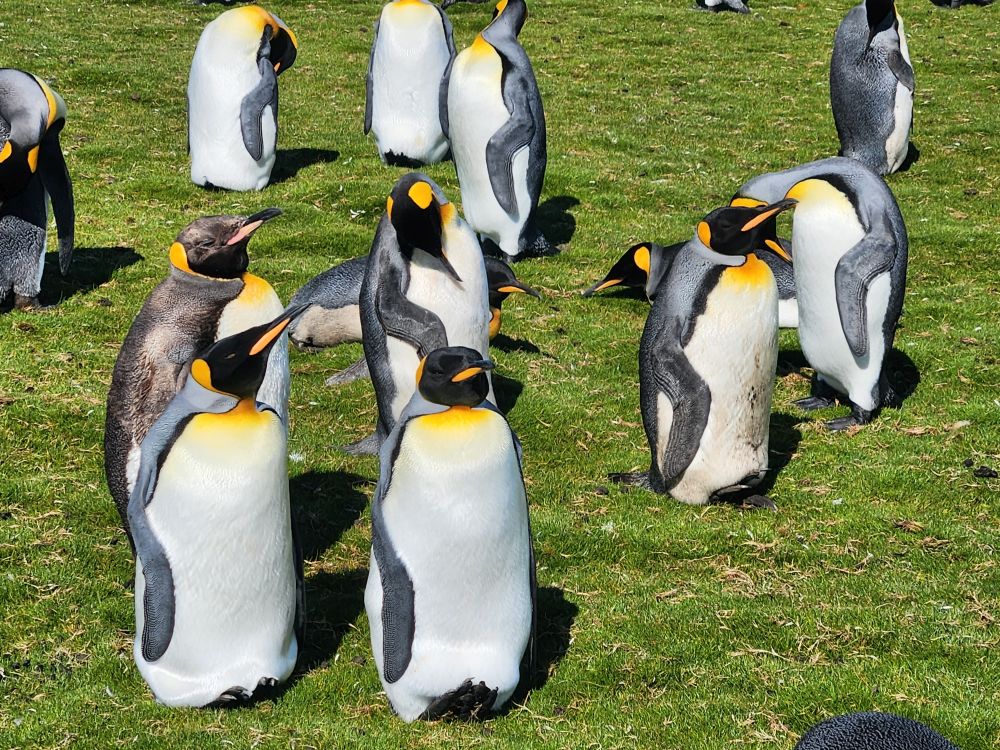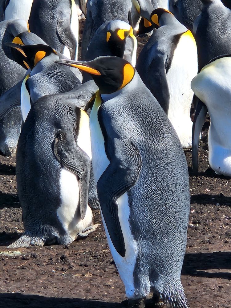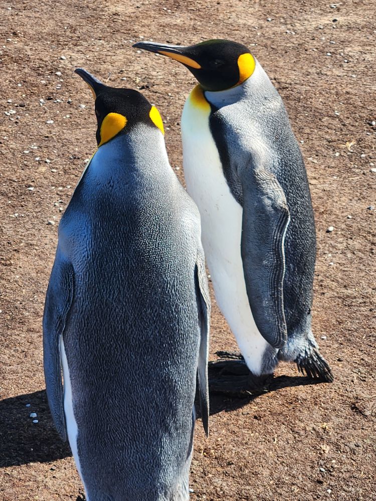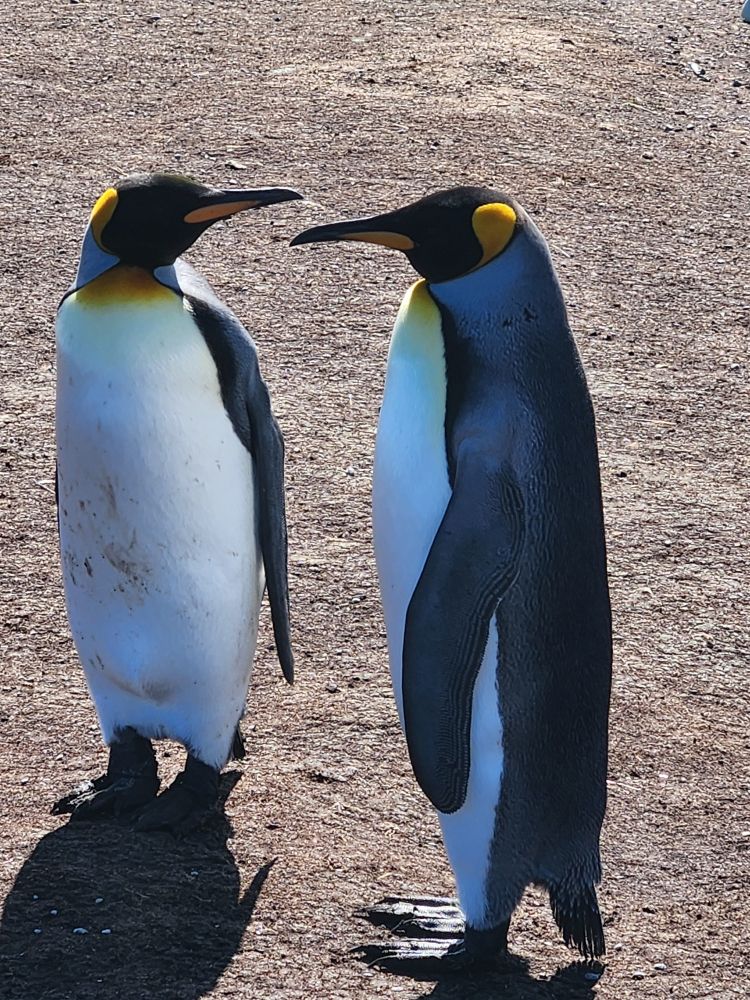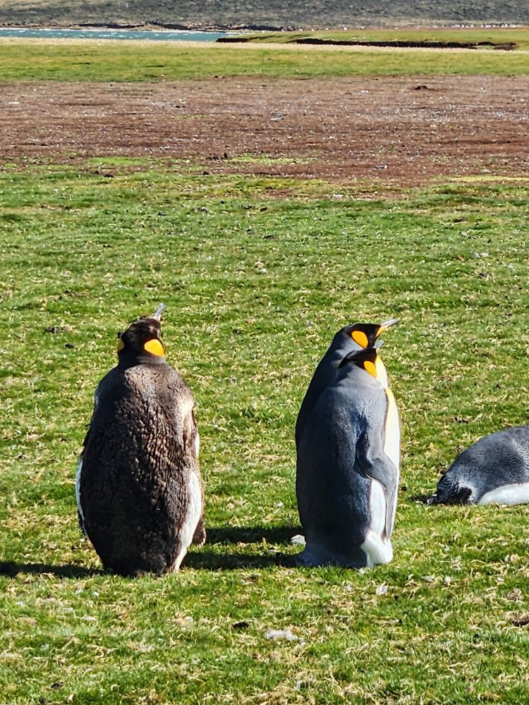 We meander over to the King penguin circle and really just stare. Penguins are such amazingly interesting creatures. And these sounds they make! We manage to capture some of their calls on video, when we can shelter the phones from the wind.