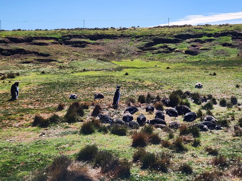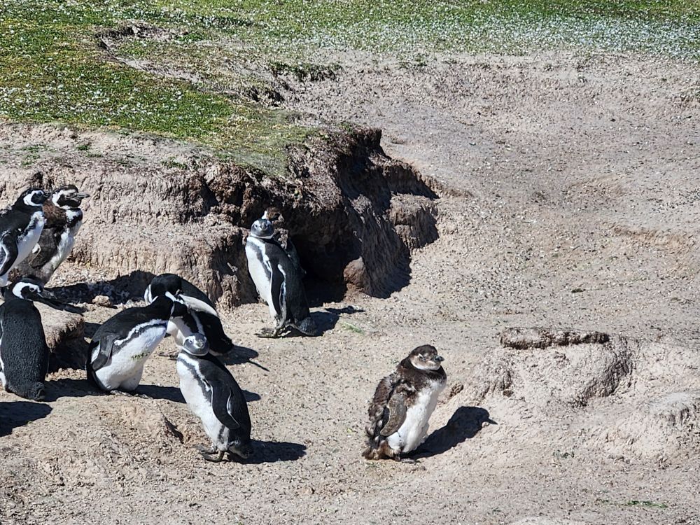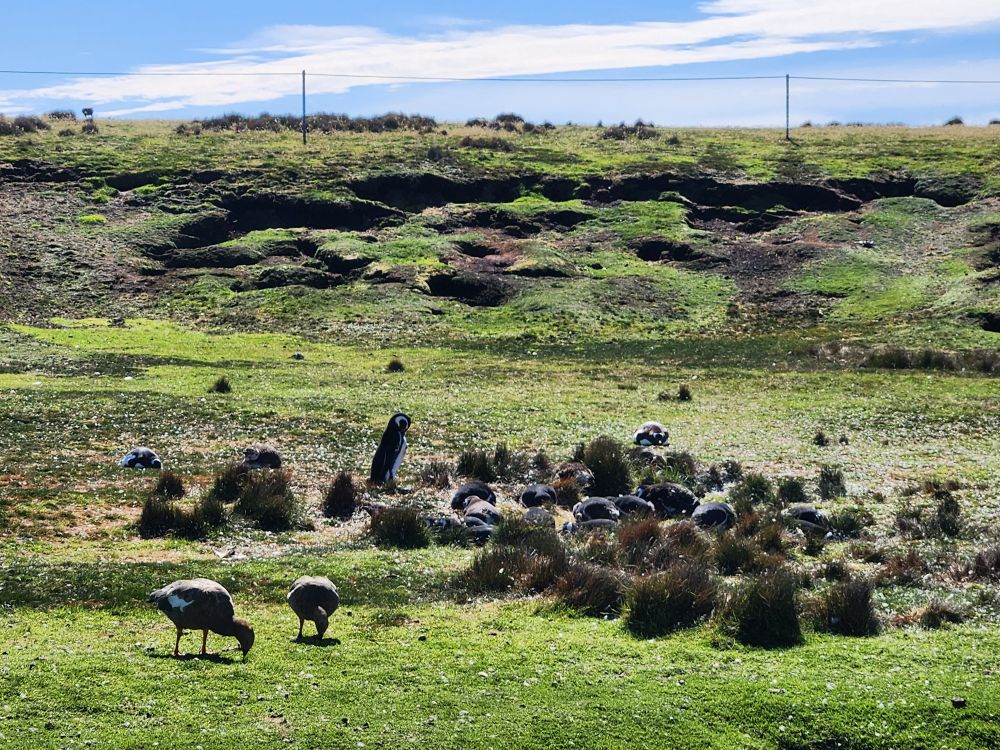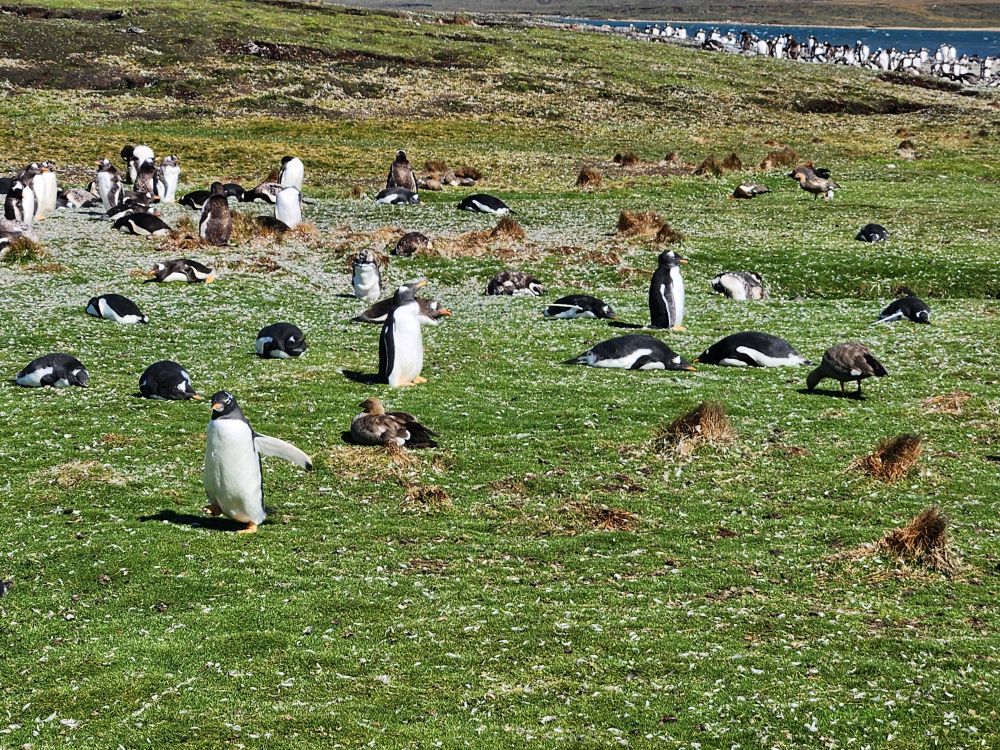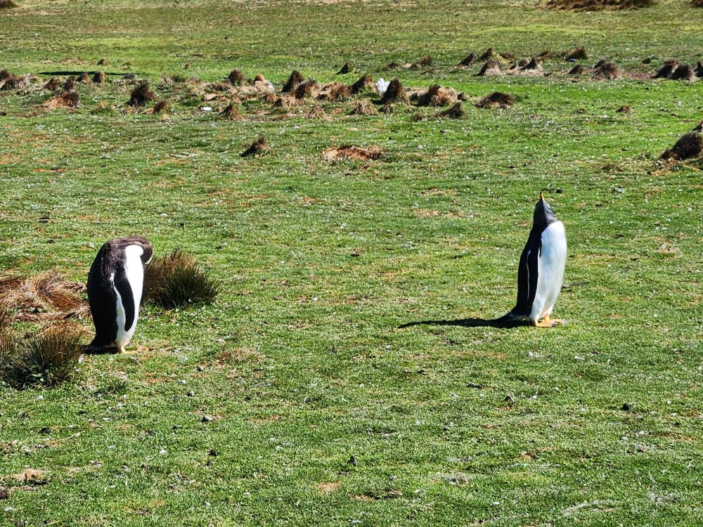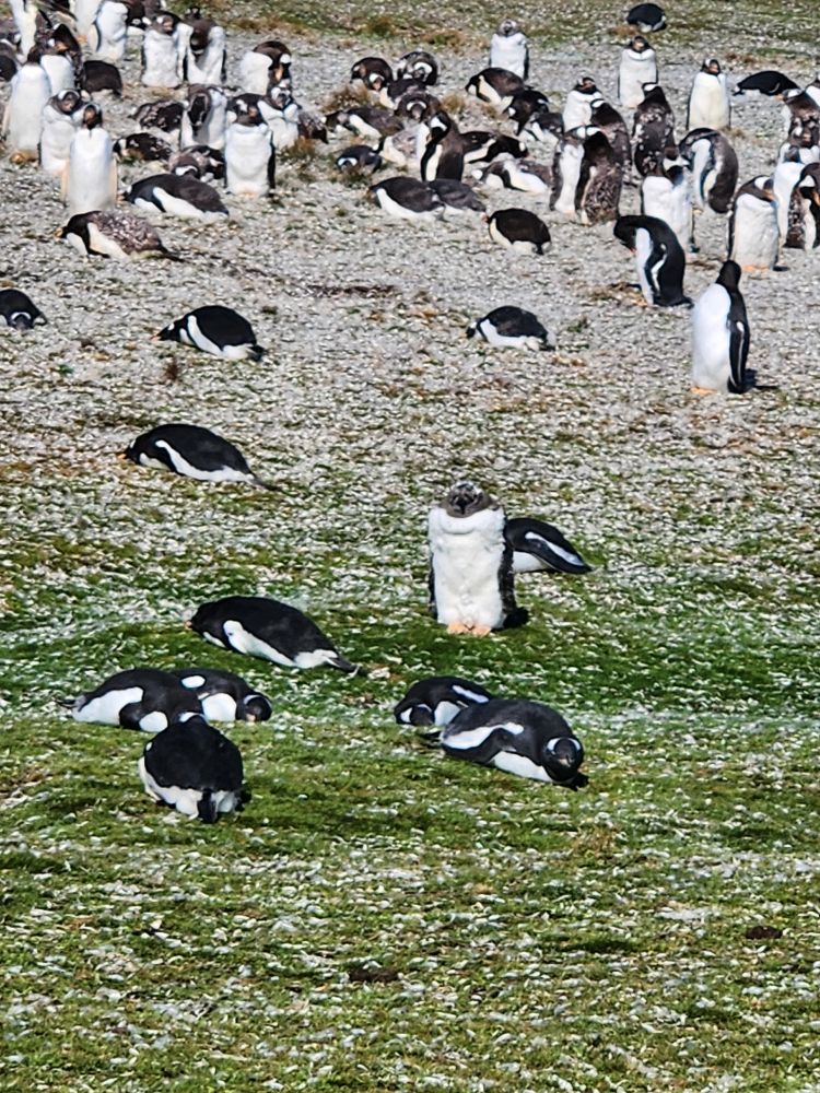 The last grouping we find are Jackasses who are looking after Gentoo babies. One of the guards tells us she has never seen this – nor has any of the other tour guide/guards. Pretty wild they are tending to another species young!