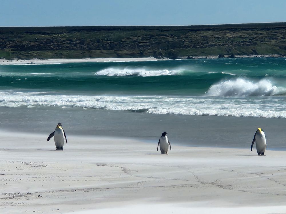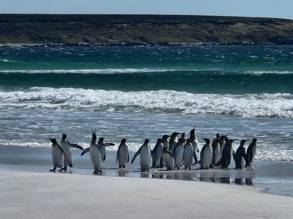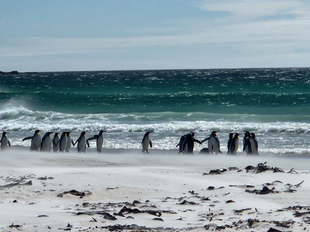 At the beach, we watch a group waddle toward the water – you can just hear the lead guy saying, “Aw, come on, do we really have to do this? Really?” Of course as we are happily watching and staying out of the penguins way, a guard yells repeatedly at an Asian tourist to stay away from the penguins, to not crowd them, not force them into the water. Sigh. We just stay out of everyone’s way and enjoy watching the Kings in the wind and the ocean spray.