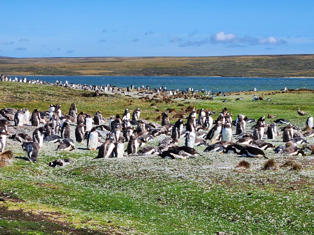 Heading back toward the car park, we stop for a quick bathroom break then continue onto the Gentoo area, where there are hundreds of these little guys spread out along the opposite shoreline. There are also quite a few empty white rock circles. We ask a guard about them, and find out that they are supposed to be for the penguins, to keep that area free for them and keep us tourons out. The Kings are happy with their circle, but the Gentoos just sort of do what they want and go where they want, completely ignoring the circles. Strong headed little things!