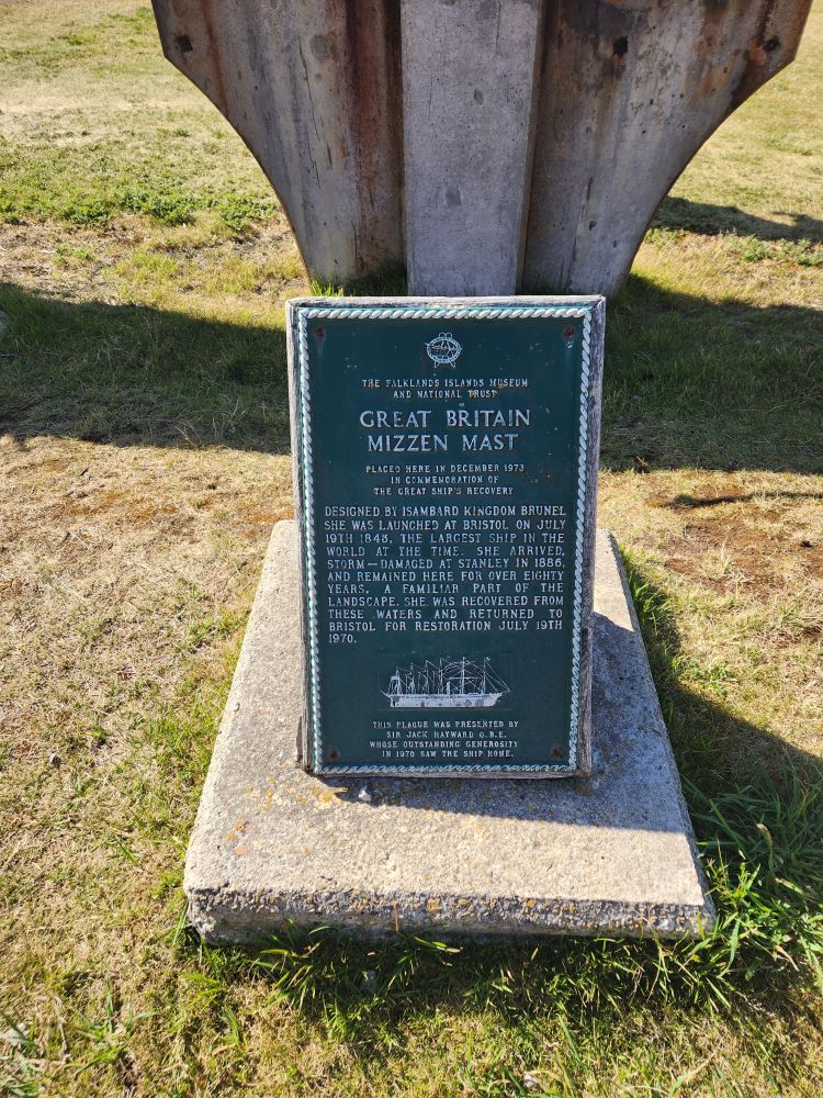 3 hours later, James deposits us in town at the visitors center so we can explore a bit before heading back to the ship. It is now an absolutely beautiful day, the wind isn’t even all that bad here in port as we wander down the waterfront to the Great Britain Mizzen Mast, the mast of a ship that arrived storm-damaged in 1886 and sat abandoned for 80 years. The ship was finally returned to Bristol, UK, in 1970 for restoration. We think the story goes that they never actually restored her, and this is all that remains now.