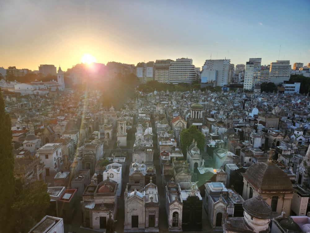 It is another beautiful morning, sunny but cool, and stunning as we enjoy our early morning coffee from our balcony overlooking the cemetery.