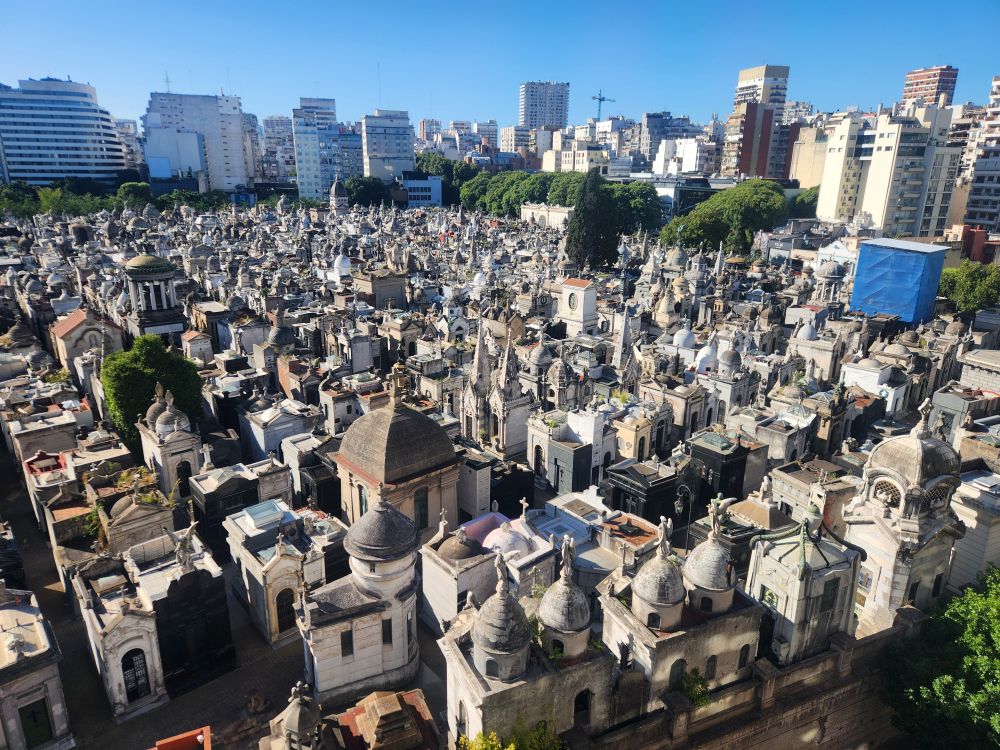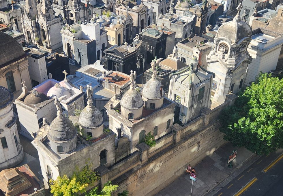 After a while, we hit the streets and walk all around the perimeter of the cemetery- twice! Figured we could at least get some exercise and enjoy the fresh air – and marvel at the dog walkers! They are everywhere, but these two (who we couldn’t get the phone out to photograph fast enough) had like 20 dogs between them! Obviously a super good business to have here in B.A.