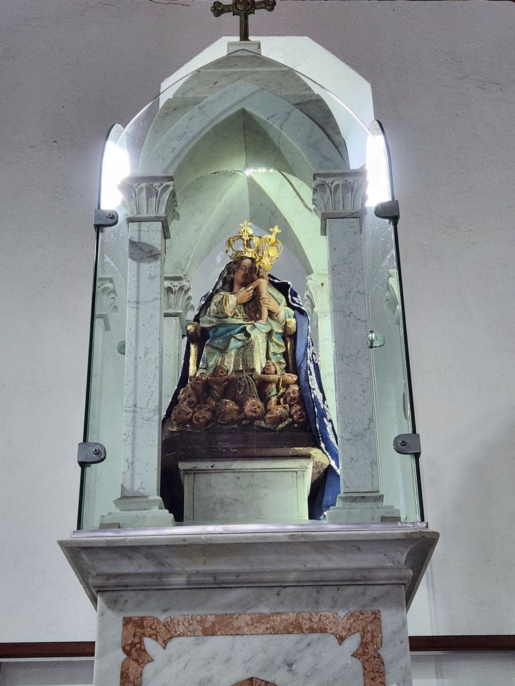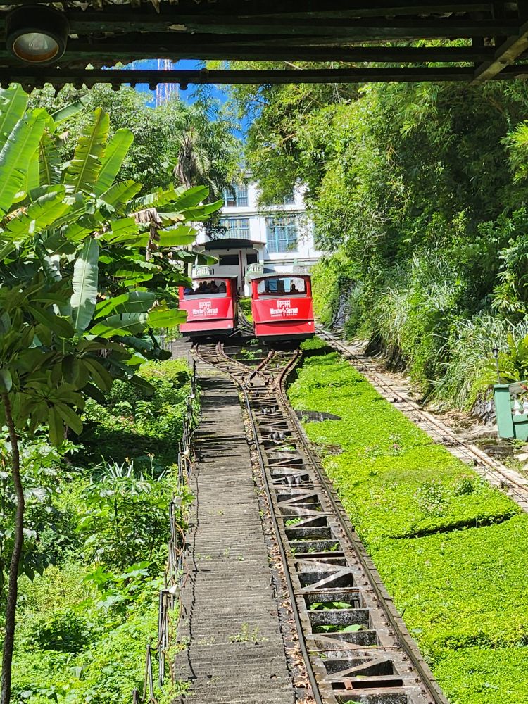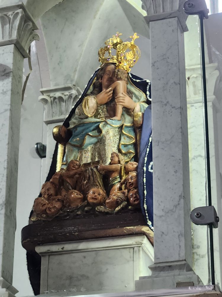 Taking our fill of photos, we next head out to the Capel of Our Lady of Mounte Serrat, built in 1604. It is still visited by sailors who come to pray for their safety, and has the ubiquitous ribbons tied to fencing in the front. A simple single aisle church, it is located at the top of the only other access to this mountain, the 402 step staircase built before the funicular.