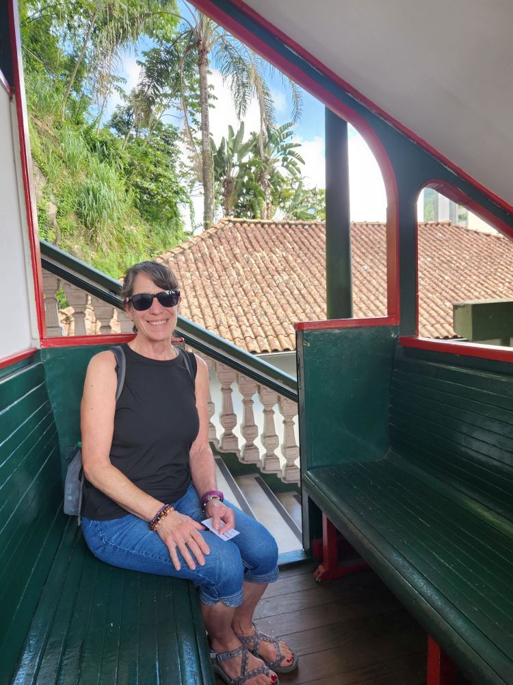Today we have an all day shared tour (booked on our own) to go to Monte Serrat and the Coffee Museum so we are up and at ‘em early – but then again, that’s usual! We are out in the port terminal really early and searching the area for the meeting place – the tour operator has given us excellent instructions including pictures! Makes it fairly easy, except for the fact that MSC is here for turnaround – or at least people are embarking – and they have the pier nearest our meeting point. Our pier is way down the port – we have to take a shuttle to the terminal and our entrance is in another wing of the building – just means more walking – we’re good. We do eventually hook up with our guide, Mary who turns out to be both excellent and adorable. But, as I said, we are really early, so we hang out and have a coffee, debating on whether to buy the 10 piece Pao de Queijo at the coffee stand. We pass, knowing we can’t eat them all and that they really don’t last all that well.