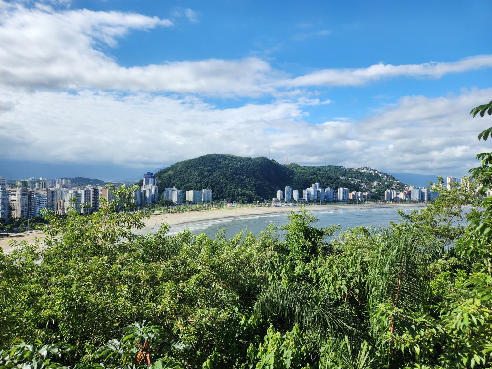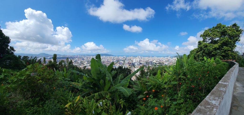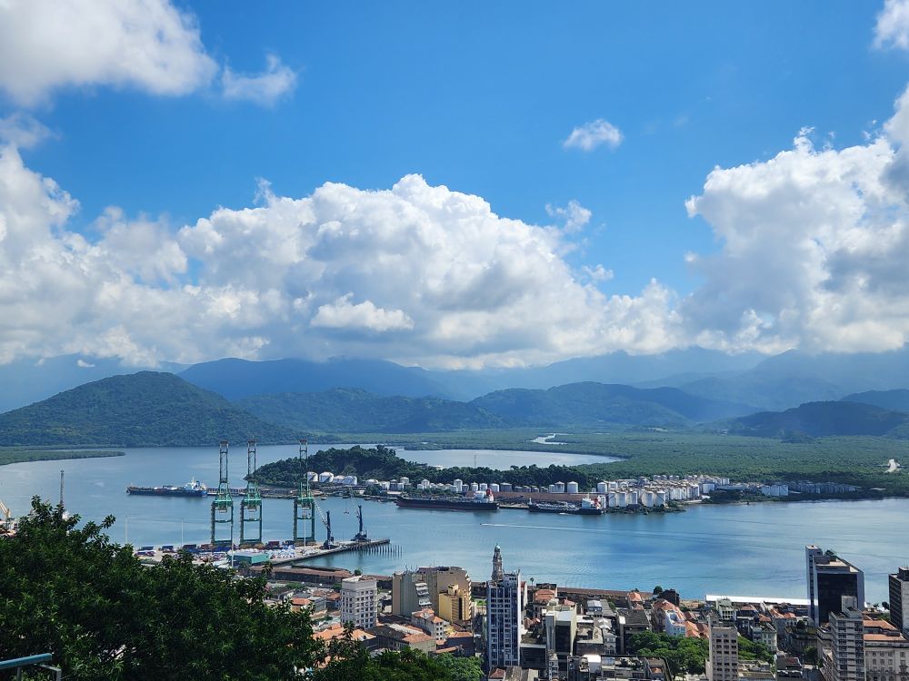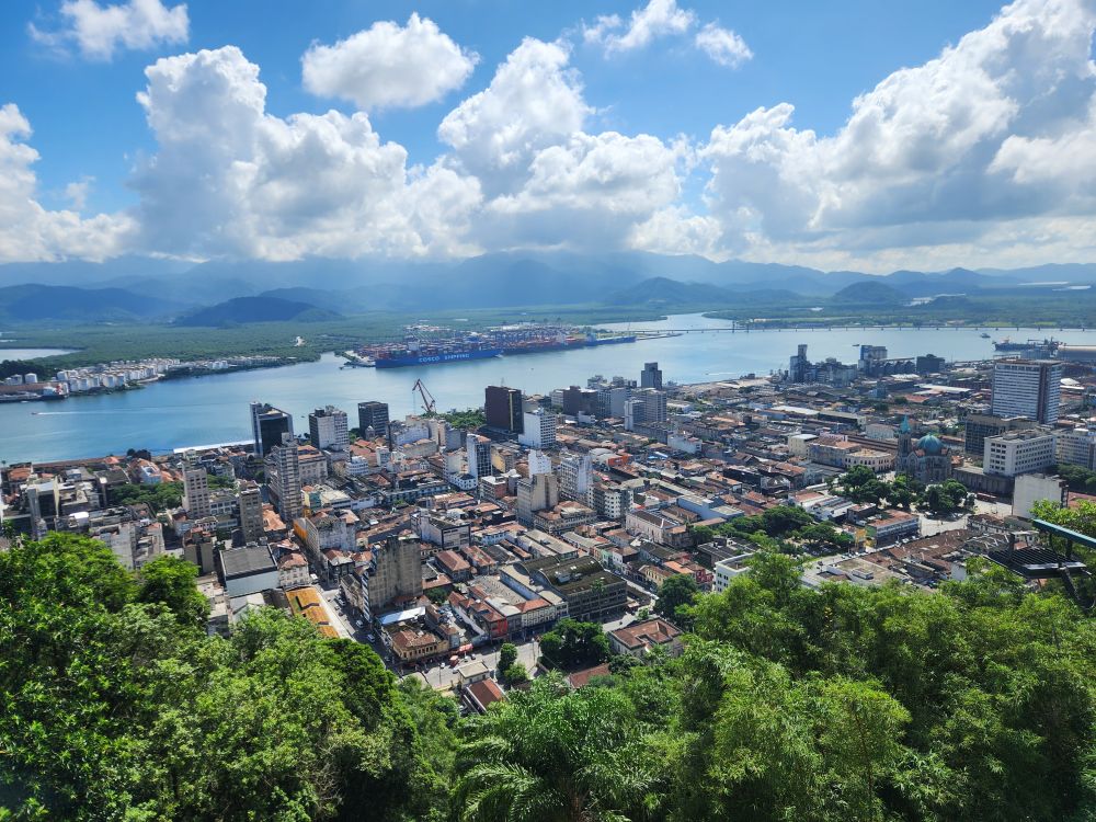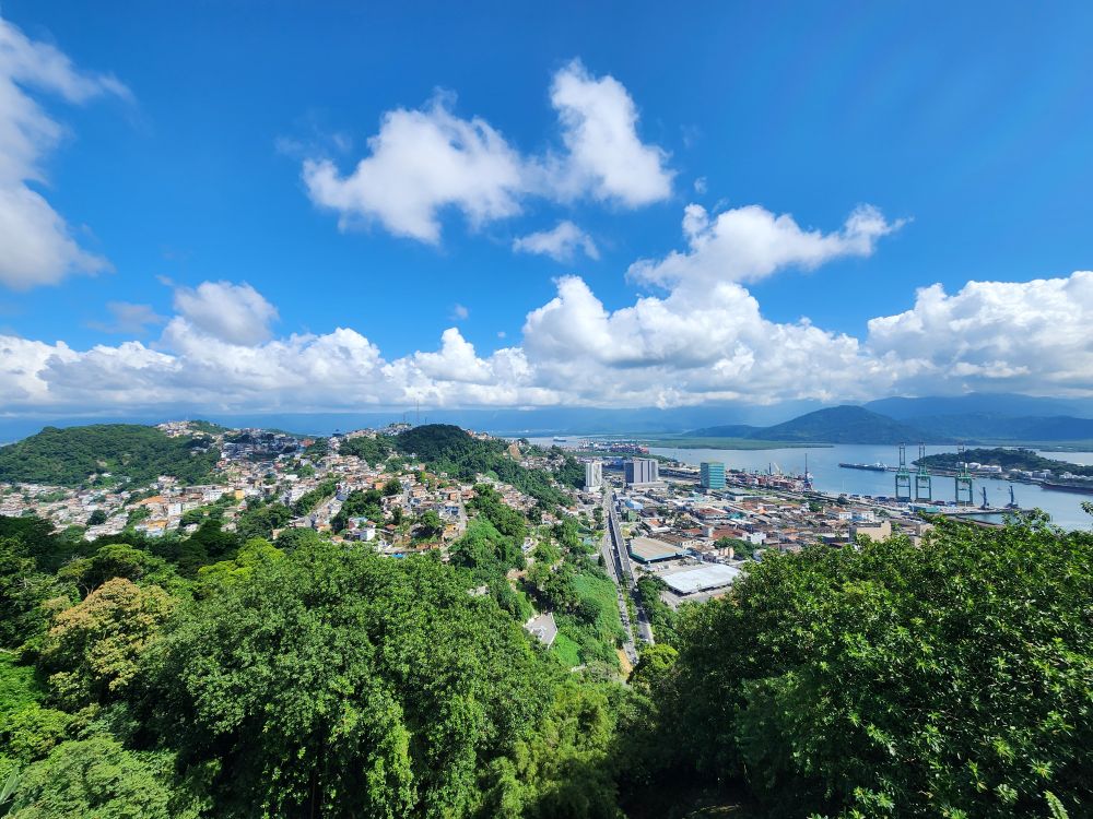 It’s a quick 5-minute ride up the 150 meter high hill to the casino. Once we are there, we head directly to the upper level viewing deck that provides stunning views across the city of Santos and over to the mainland forests.