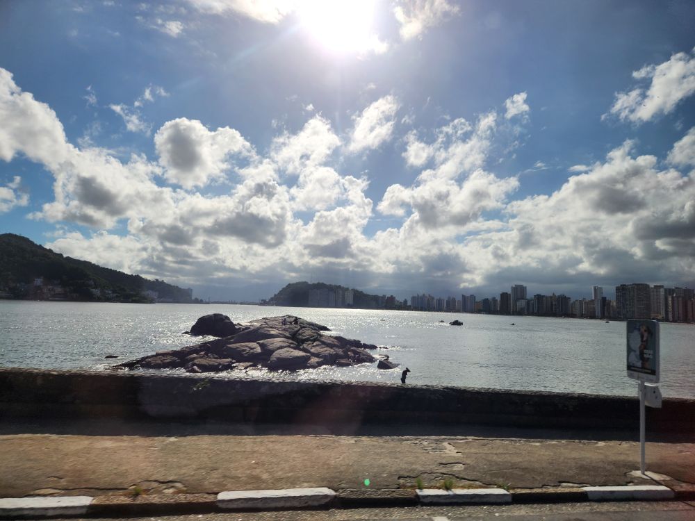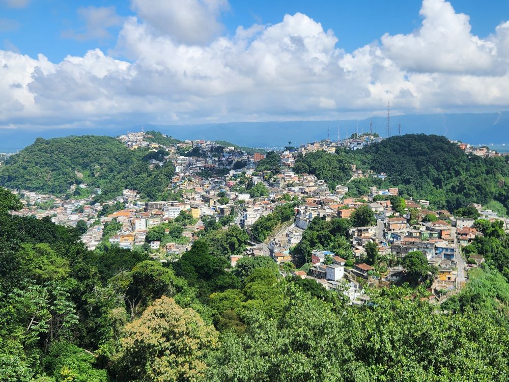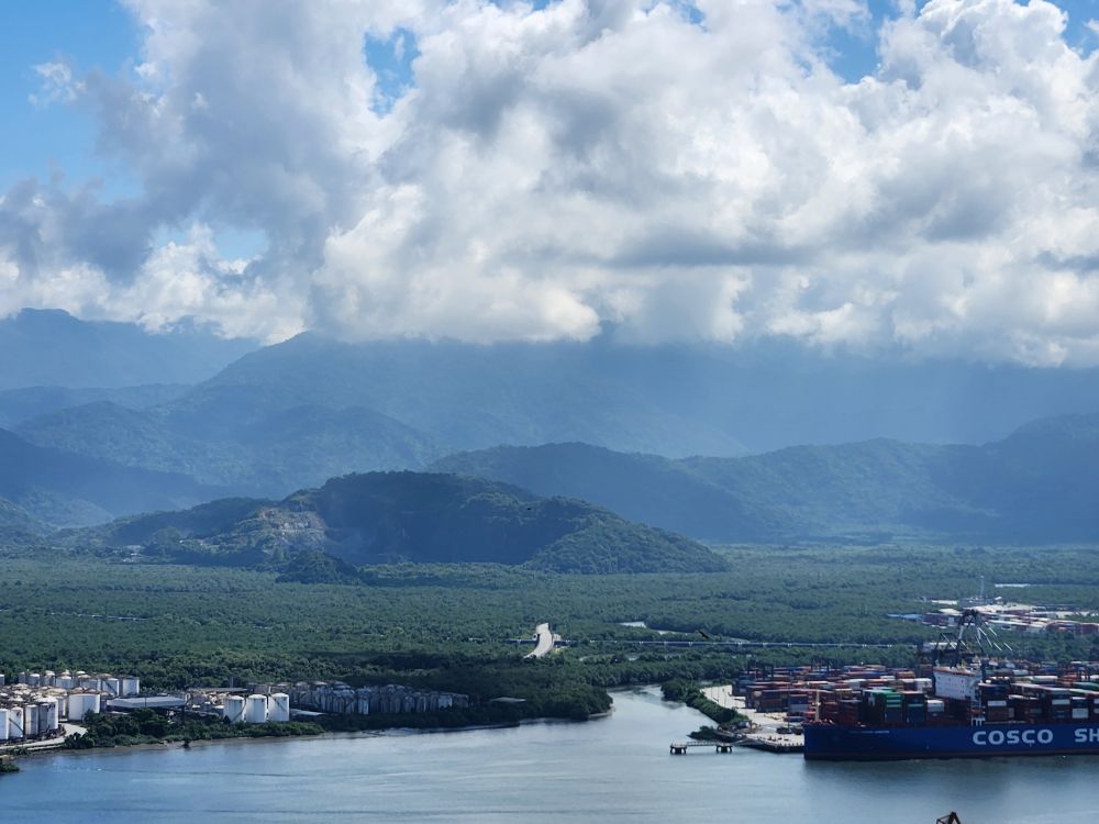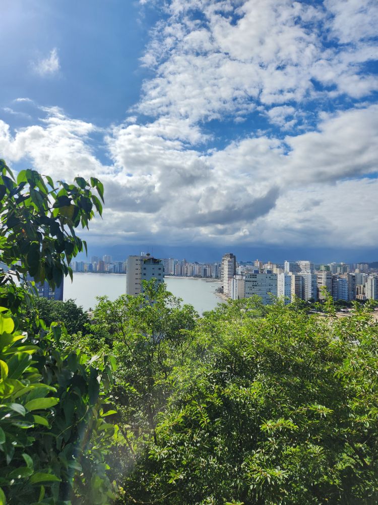 It’s a quick 5-minute ride up the 150 meter high hill to the casino. Once we are there, we head directly to the upper level viewing deck that provides stunning views across the city of Santos and over to the mainland forests.