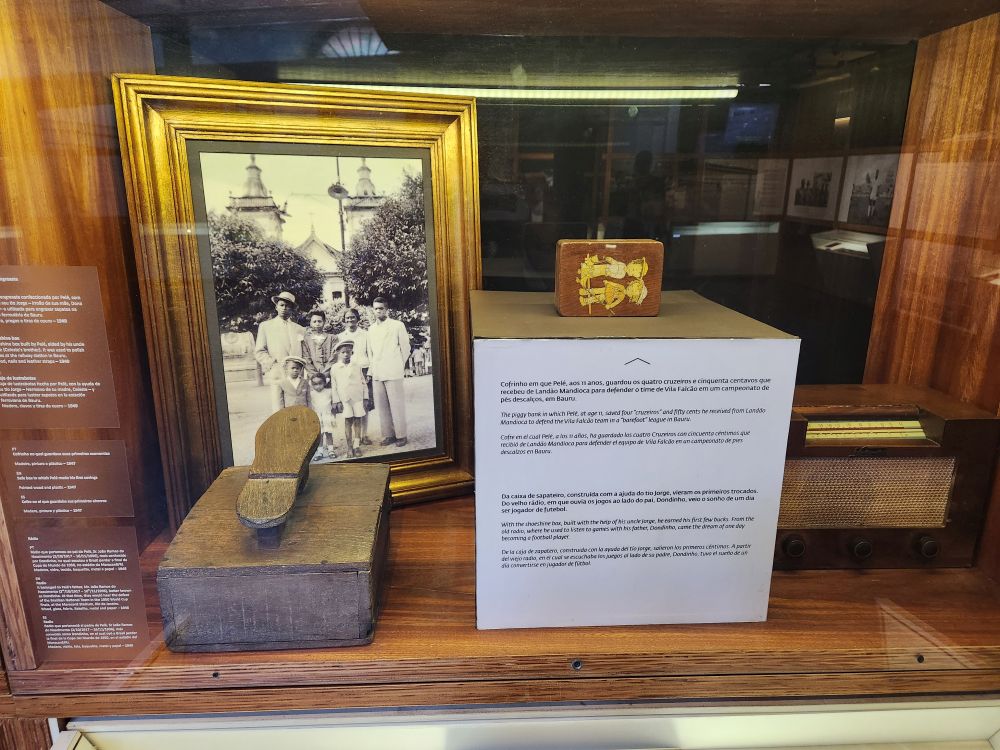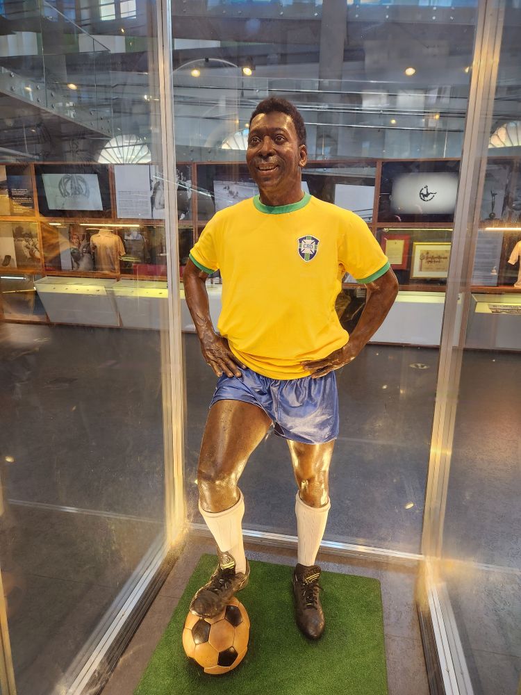 Into the Pele museum we go – which is a really cool place with tons of information on Pele, his life and his successes. Such a legend. We learn that his father was a football player too (which we didn’t know) and that before he gained his fame, as a youth, he was a shoeshine boy outside a train station in his home town of Bauru. His shoe shining kit, a little piggy bank he used to keep his money, the radio he used to listen to games and the ball made from torn socks that he first used and showed his talent are all on display here. And of course tons and tons and tons of memorabilia and wax likenesses and photos.