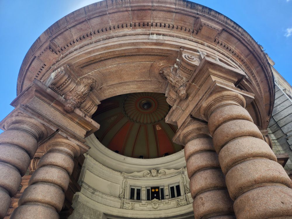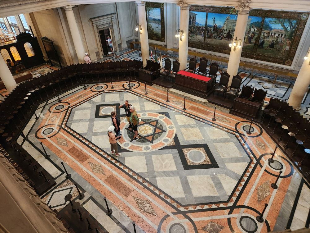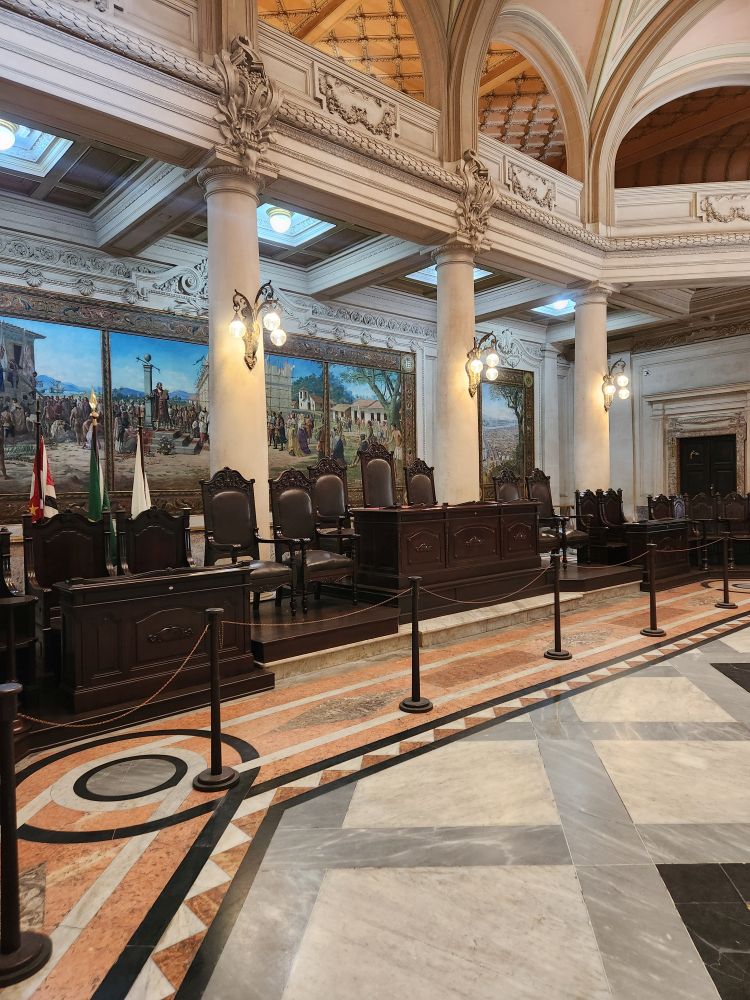 Now we are off to the main event – the Coffee Stock Exchange. First we walk through the old banking district. Virtually every building on this street was a bank back in the days of the stock exchange. Then it is on to the Exchange, itself in a beautifully designed building with arches and marble embellishments everywhere.