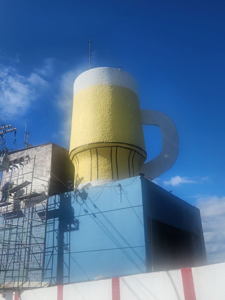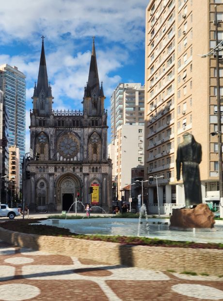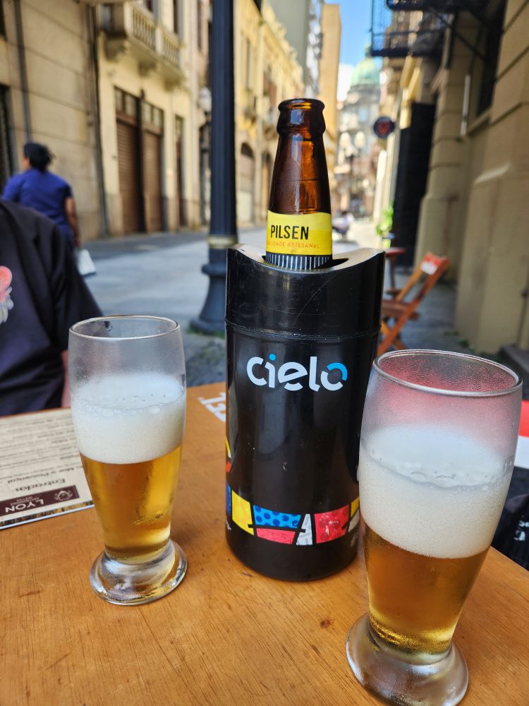 Our last stop of the day is all the way around the bay to Porchat island, where we have a marvelous view of the shoreline of Santos, along with a wonderfully artistic advertisement for a cervejaria right there at the top of the mountain! Then it is back to the port, down to sea level with quick photos out the van window of the bay, the Basilica Menor de Santo Antonio do Embare, one of the many Gothic churches here in Santos, and then the port facility and back to the Quest for our normal evening activities.