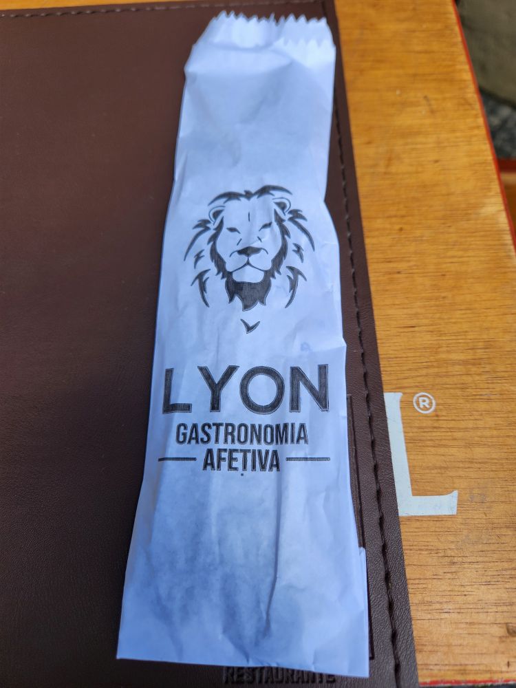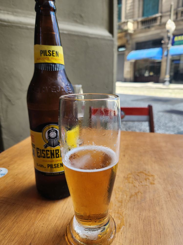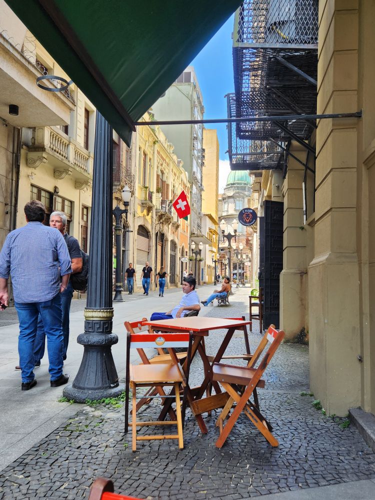 As we were waiting, I saw a street placard advertising Pao de Queijo for 1.75 Real with an arrow pointing down the street. We figured, what the heck? Appetizers! So I walked down to this great little diner sort of place and there two Paos left. I asked for both but another woman standing there (who I thought worked there) shook her finger and basically said one was hers. Ok, then one please! So one it was! And it was delicious and a perfect appetizer split between the two of us.