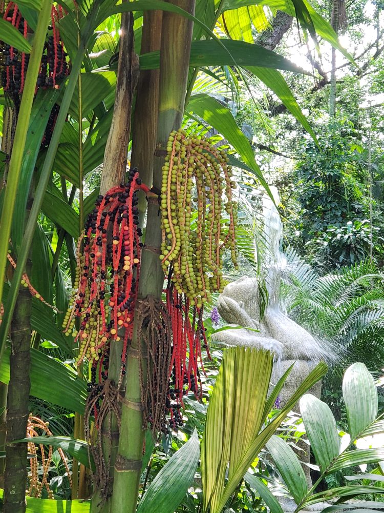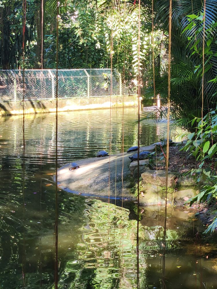 There are birds and parrots and turtles and koi ponds. And a real coffee tree where we can really see how the coffee bean pods grow on the trunk!