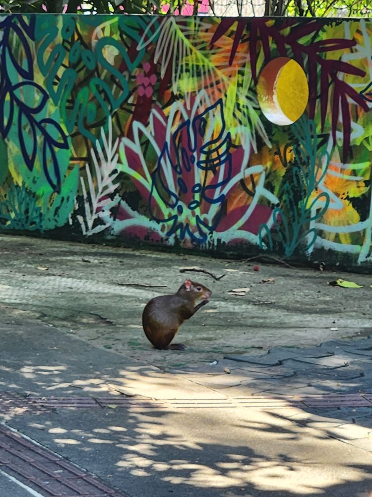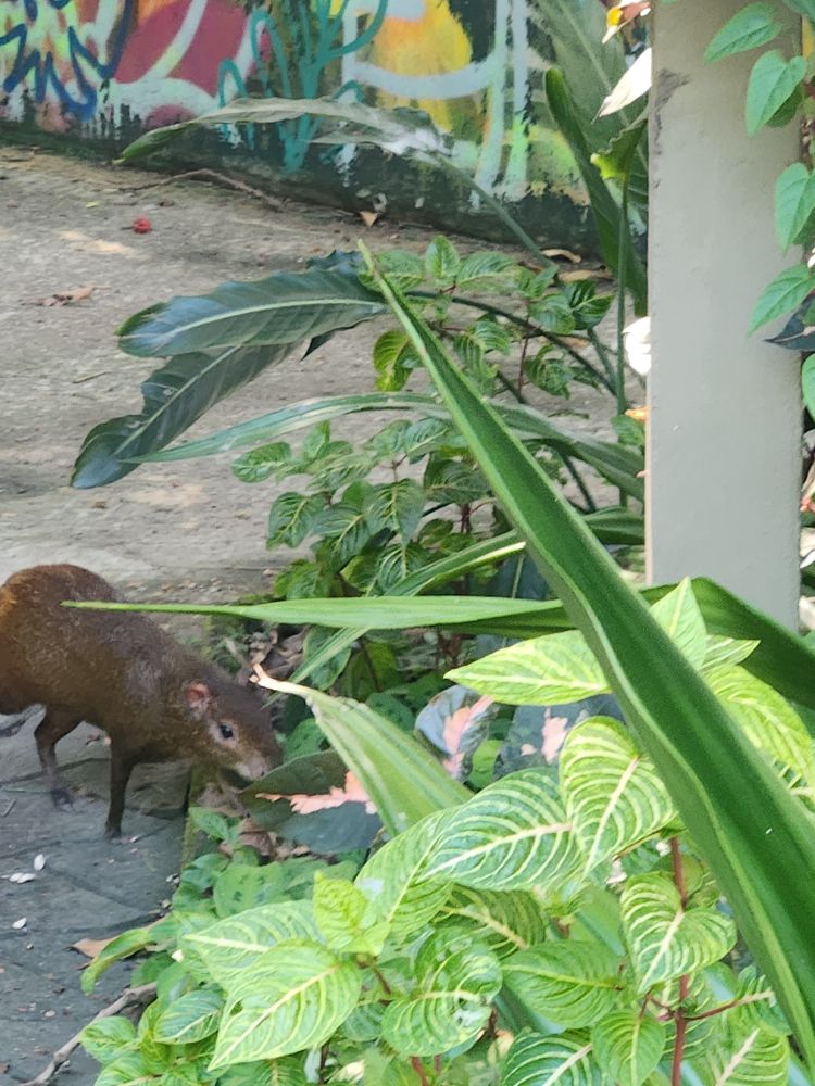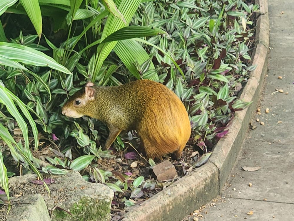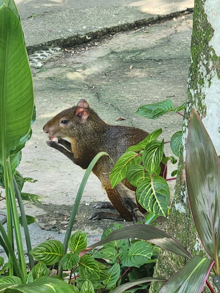 Oh, and then the Agouti! This bizarre combination of a rat, squirrel and nutria. Really weirdly pretty looking with their gold fur color, wandering all over the park on the sidewalks in the bushes, just everywhere!
