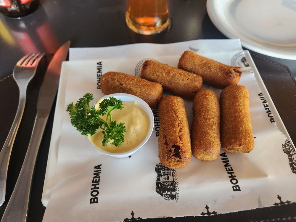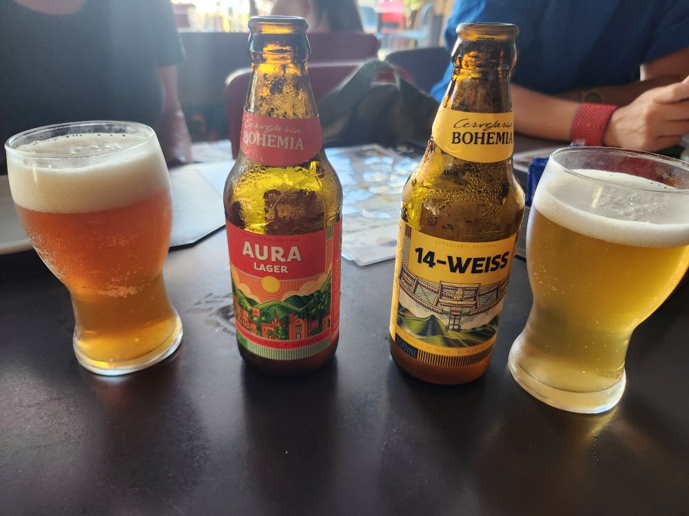 Historical visit complete, we now are going to the Bohemia Beer museum! Yay. As this city had a huge German population, beer is very important here. And as in Asheville, because of the mountain location and the clean fresh water, there are multiple breweries in the area. There is also a restaurant here where we have our lunch, great beers (of course) and a German Sausage sandwich for Ed, Pork “knee” croquettes for me and salad and ribs for Lais. Great way to prepare us for the tour!