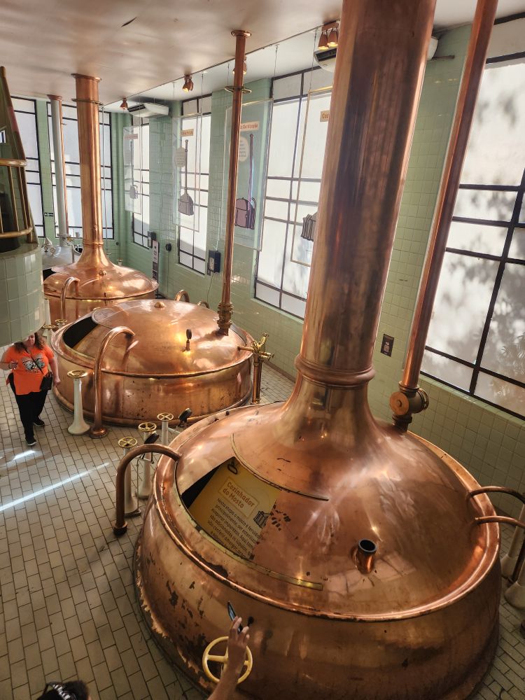 Inside the museum, we wander through the displays, sampling 4 different beers at little stations strategically placed about. There are great displays about the history, of course the huge copper vats, and lots of neat displays, and a whole area where you can learn how to brew your own beer area by signing up for classes, or renting the space out for a special event. Brilliant!