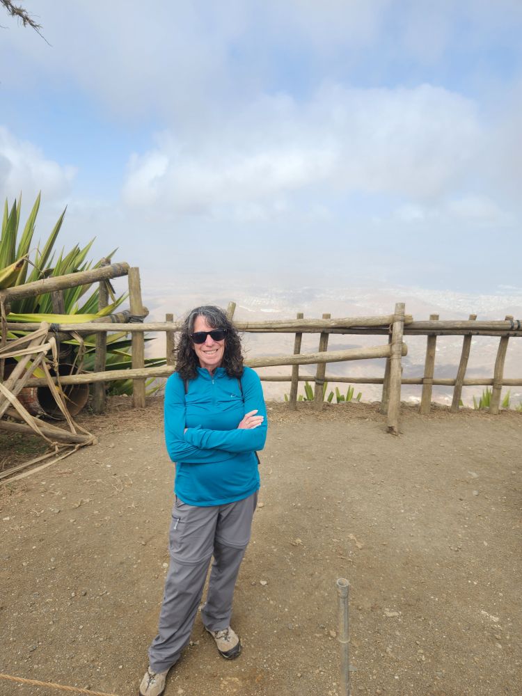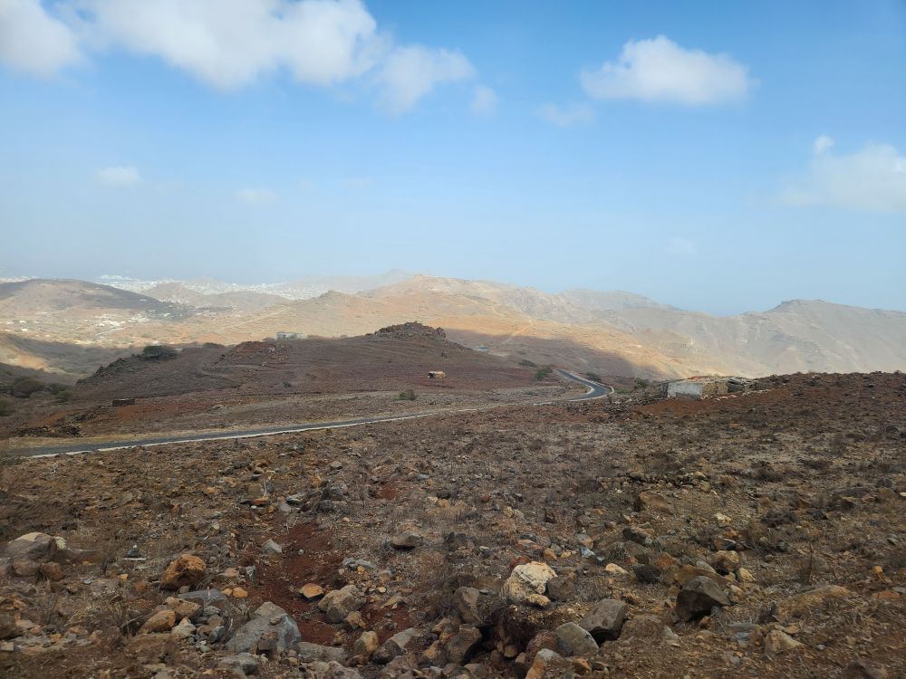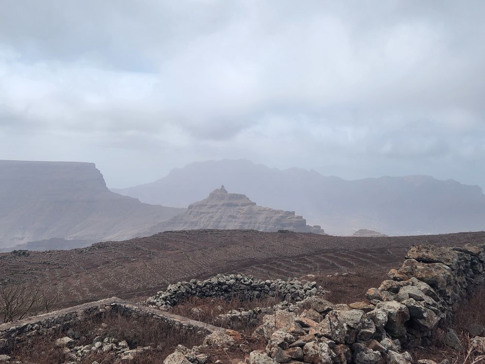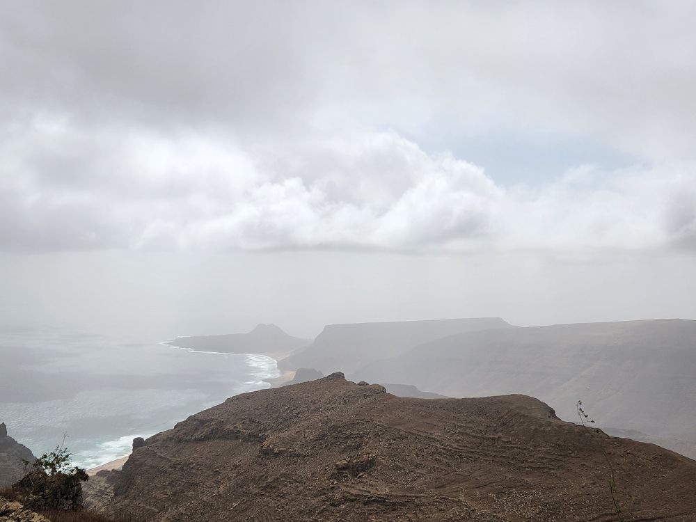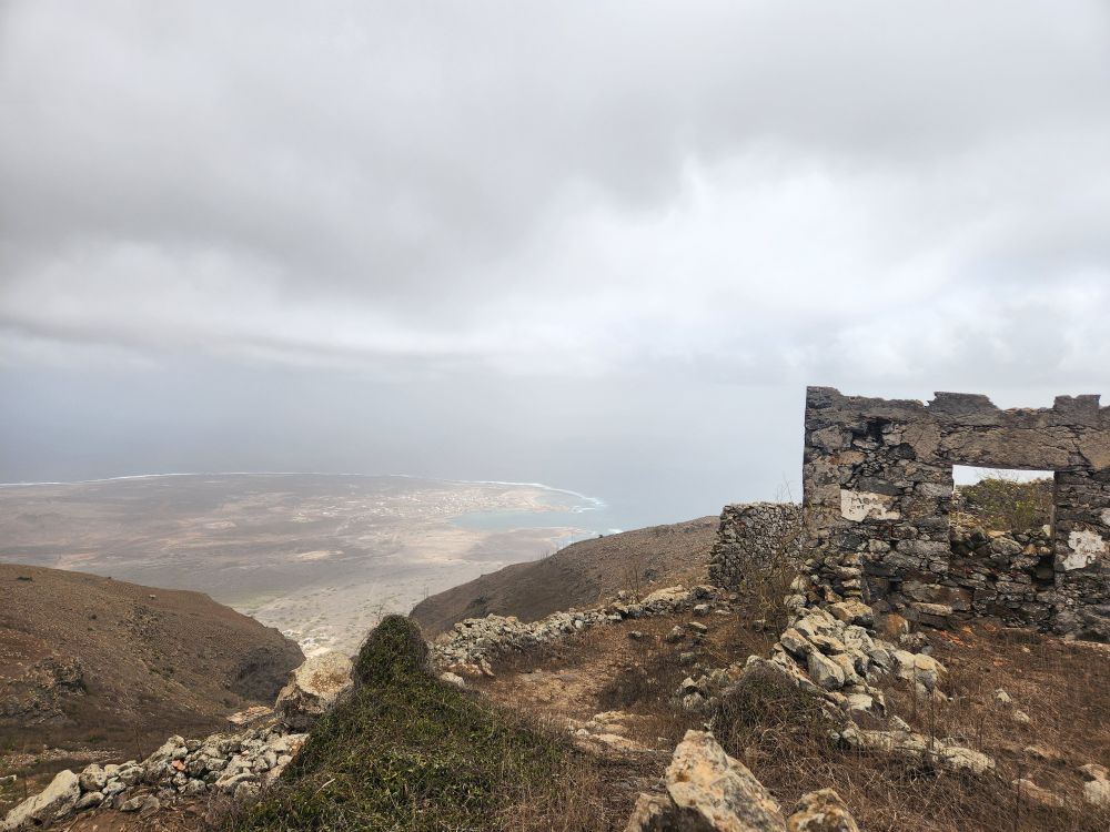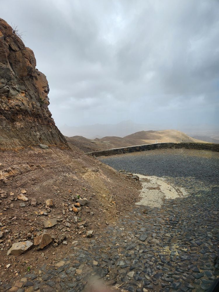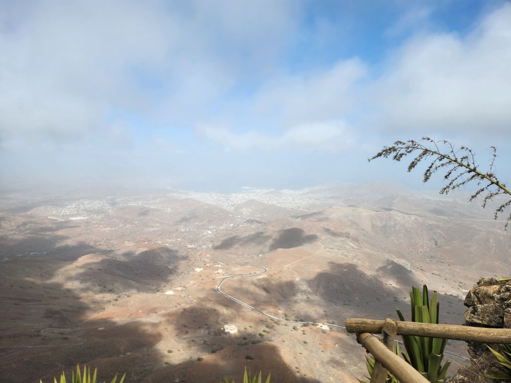 At the top of the mountain we have beautiful views down into Mindelo city and across the other side of the island – although it is too cloudy to see across the bay to the other islands. Sort of gives everything a magical feeling though, with the clouds swirling around.