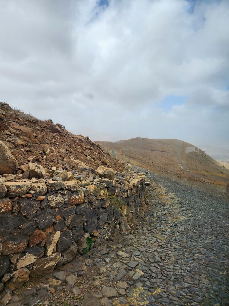 Tour time arrives and we head out to our little bus – they are using city public transport as tour buses – meeting our adorable guide Humberto. He is an absolute hoot, keeps us laughing all through the day. We start out with a ride up to the highest point of the island, Monte Verde at 2500 feet tall. The road up to the viewpoint took 20 years to build, all hand laid rock cobblestones, winding up the barren sides of the mountain. Gorgeous views, if not a little scary ride. Good thing we aren’t driving!