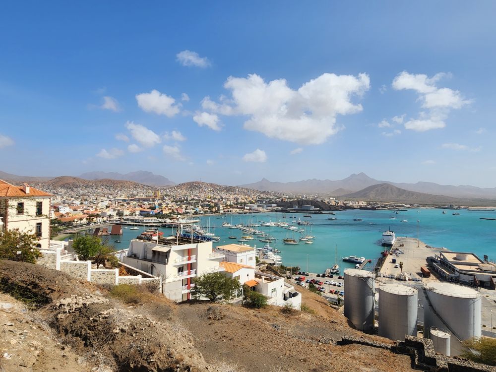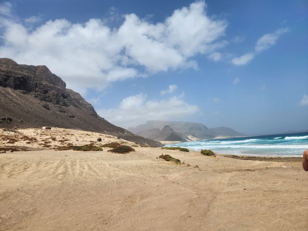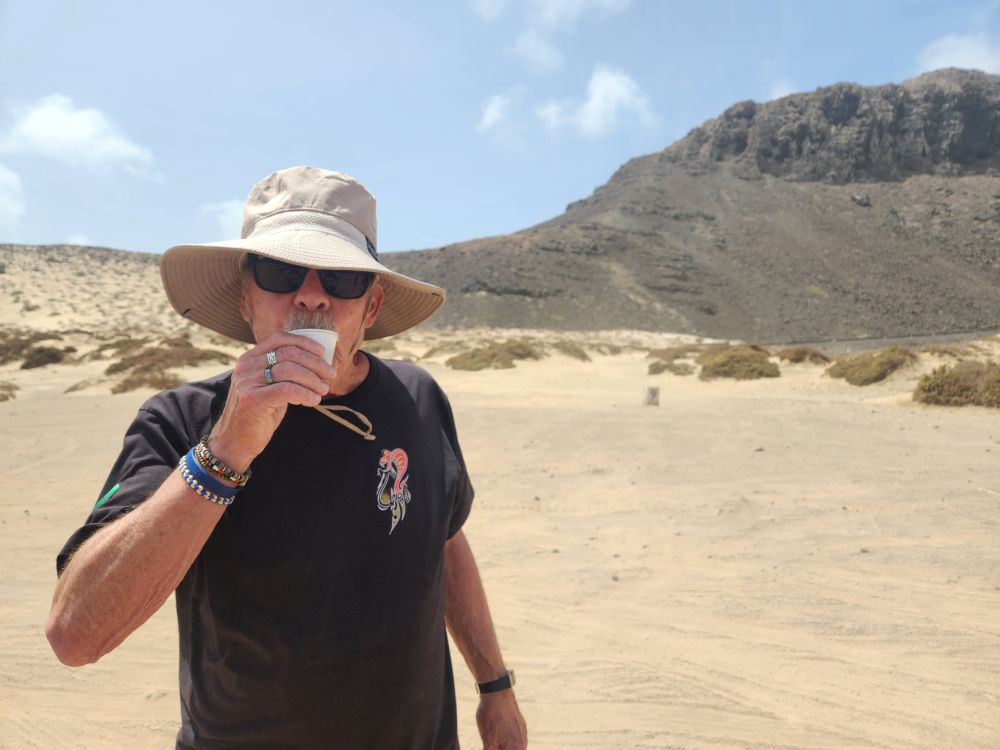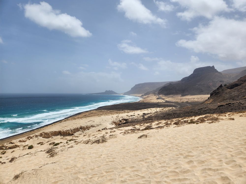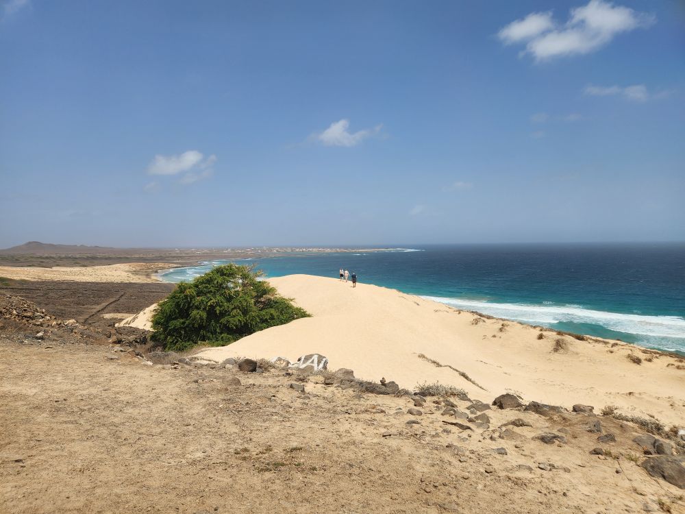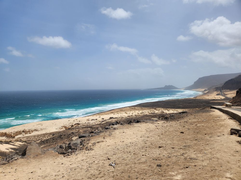 We are now circumnavigating the island, heading back to Mindelo, with a stop at a view point looking out over the wide sand that arrived here from the Sahara in a huge storm decades ago. Incredible, we know we are right off the coast of Africa – but it’s not all that close! To imagine all the sand coming from the Sahara is just mindboggling. And beautiful.