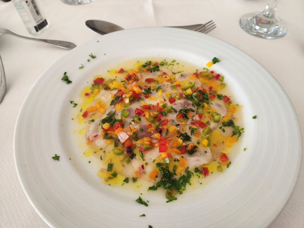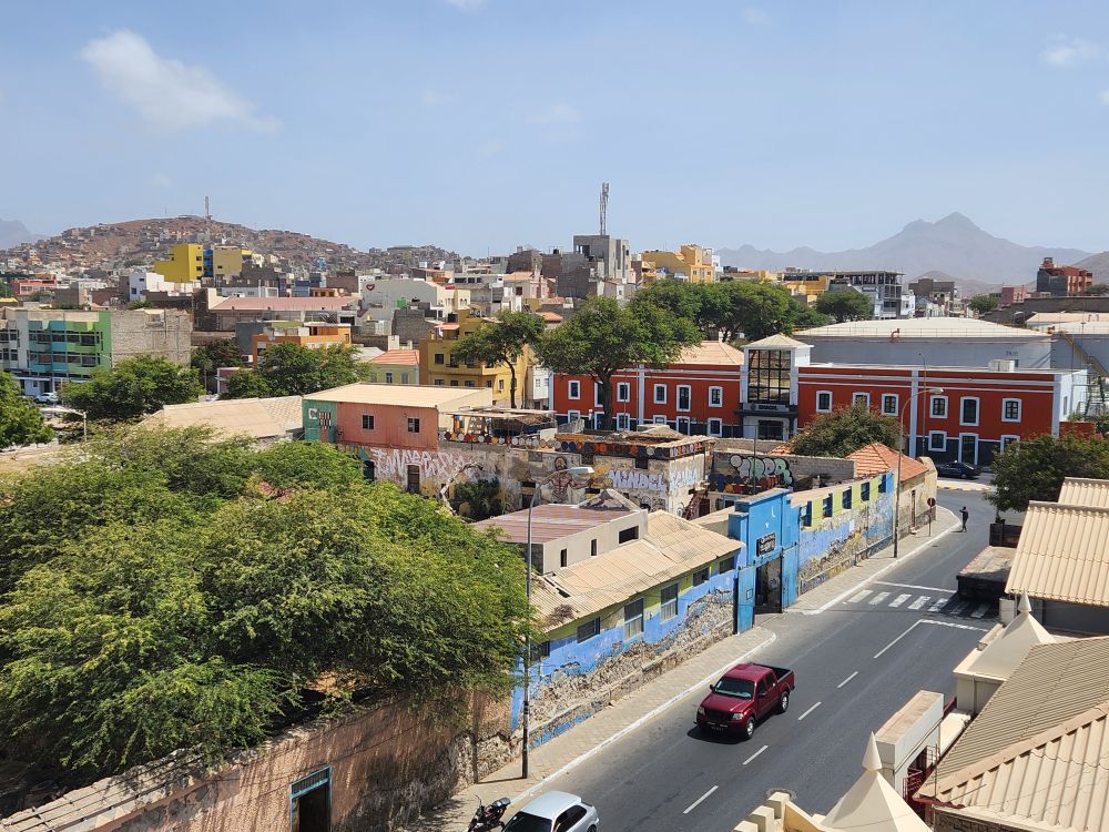 Then it is back to Mindela for our lunch at the Hotel Porto Grande. A lovely place, where we have the dining room all to ourselves and dig into our meals of tuna carpaccio and grilled tuna (the big catch here in Cape Verde) finishing off with goat cheese (another big commodity here due to all the goats – many of which we saw today on our explorations) and candied mango. All accompanied by 2 beers – no wine – but hey, you can’t win them all. An incredibly good lunch – especially for a hotel lunch service.