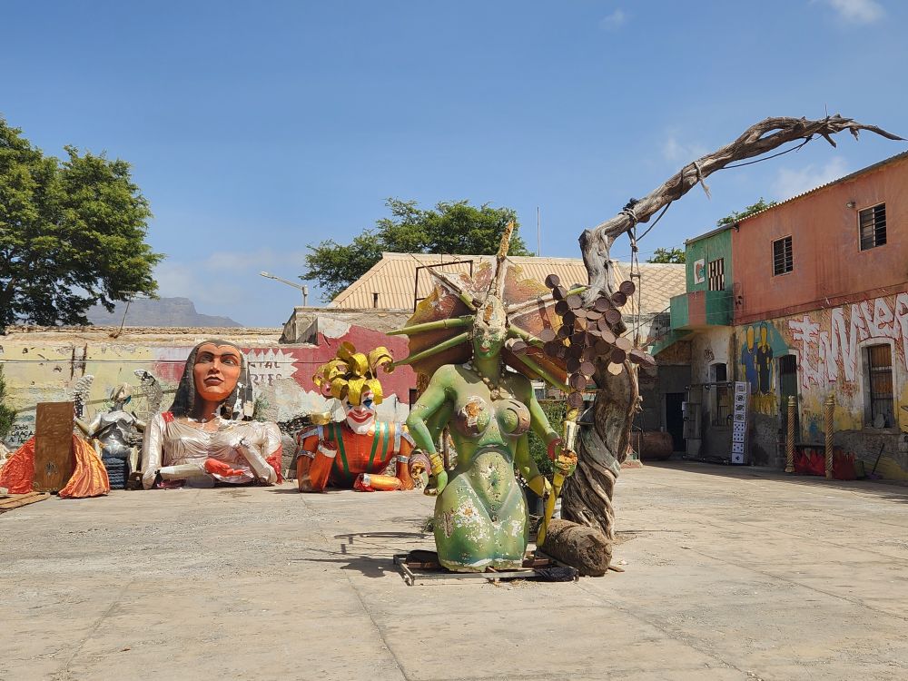 Continuing on the walk, we visit the Quintal das Artes (yard of the arts) where there are old carnaval figurines spread around the courtyard. There are also little artist shops in the buildings that surround the area.