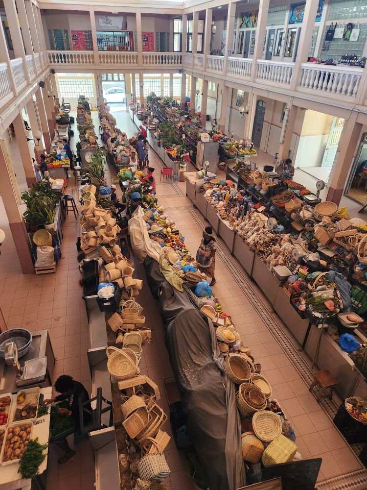 Around the corner is an African market with all sorts of vendor stalls. The city took over this area, which used to be a children’s play park, to move these vendors out of the city streets proper, and give them one area for everyone to sell their wares. We have 15 minutes here, which gives us enough time to wander through the stalls and ascertain there isn’t anything we really want to purchase. So on we move, minus one lady (who was a pain in the bus asking weird questions and nastily re-asking questions Humberto didn’t fully answer – oh and calling him Alberto the entire time) who decided to go back to the ship. Ok, at least she told someone who relayed that to Humberto, so we didn’t have to stand around forever waiting for her. Our next stop is the Ingreja da Nossa Senhora da Luz, the oldest catholic church on the island, which is unfortunately closed, so we move onto the Mercado Municipal, the largest fresh produce market – which is lovely, but not too populated – probably because of the time of the day.