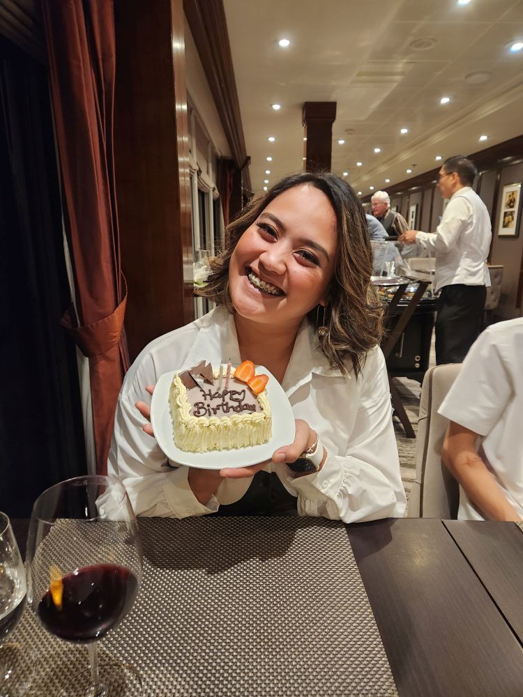 The rest of the day is slower and longer because tonight is our late reservation in Prime C for Gayle’s birthday dinner. This is a production let me tell you – she is so excited and has the entire entertainment team in her room doing her hair and makeup and getting her ready. So sweet. Mark keeps sending us updates on WhatsApp with pictures and everything.