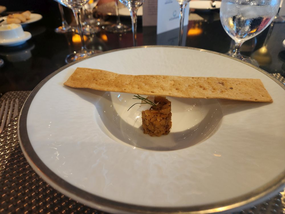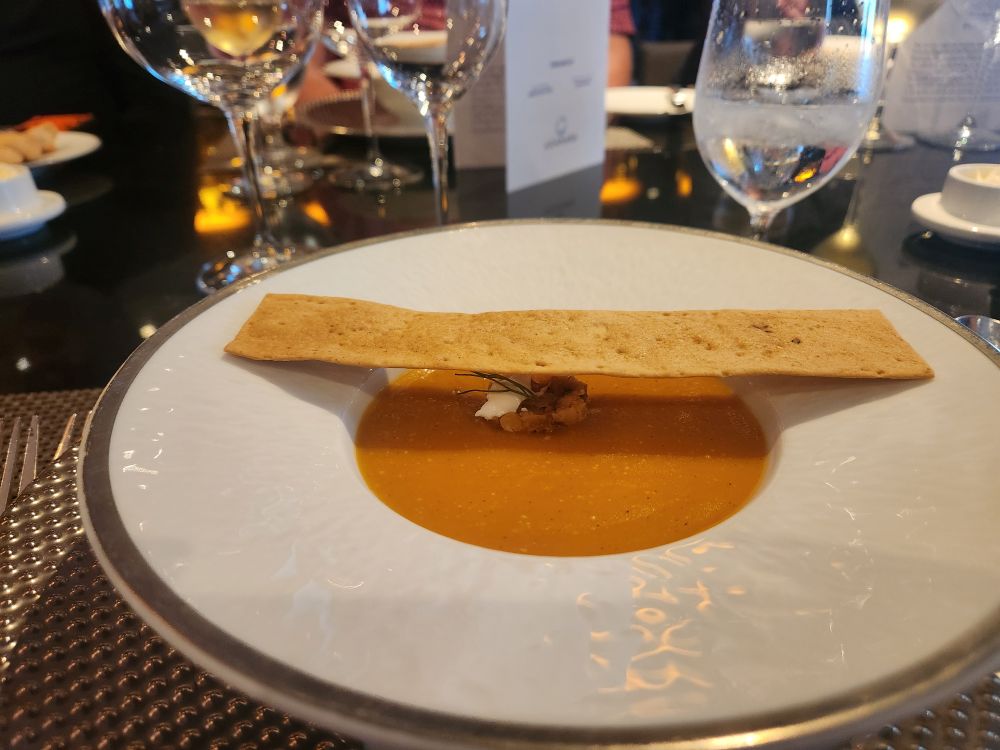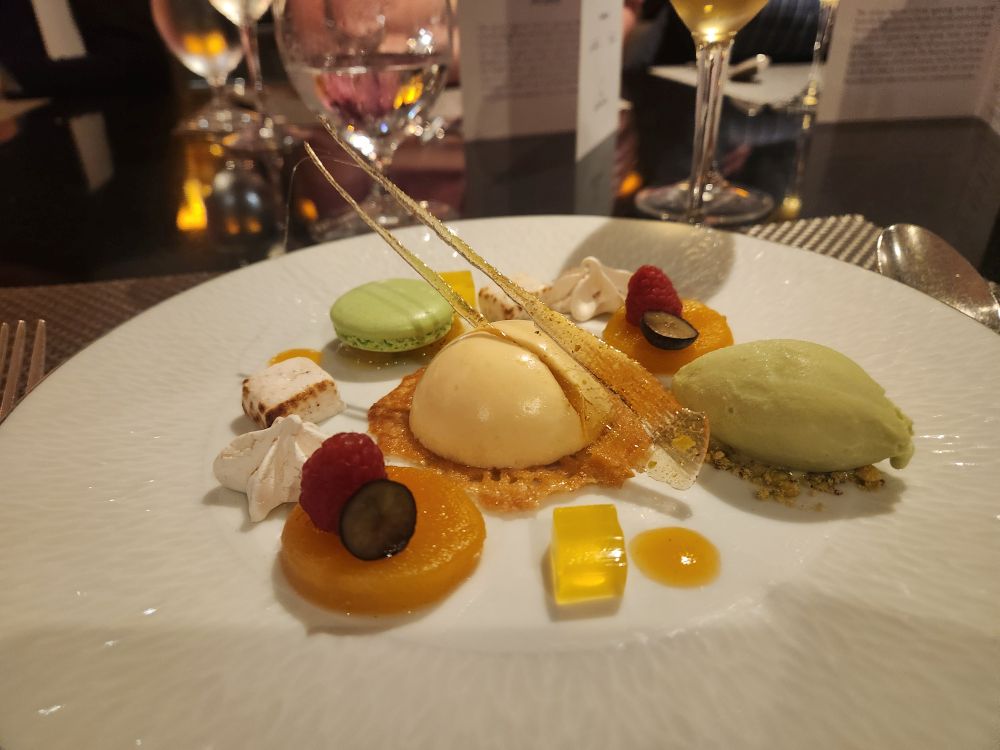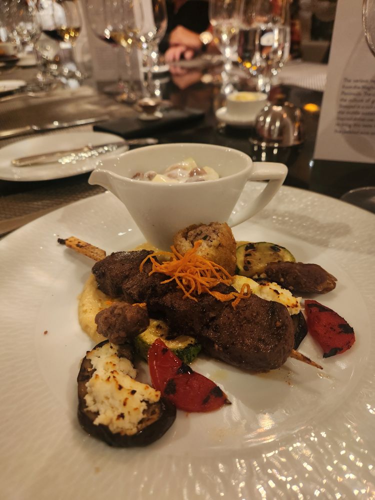 I did manage to be first in line for our stamps – strategy, it’s the name of the game – then onto the gym and drinks a tad early so we can be ready for our Arabic chef’s table at 6:30. We arrive early, with most of the other guests as well, and begin to get seated, but there is no assigned seating. On Pursuit we all had our place cards at our seats. And it is a big table of 14. We grab seats next to each other because that was all that was left, leaving 2 orphans across from us. I go to ask Michelle, the wonderful hostess, if we have anyone else coming, and she confirms there is another couple. Well, they aren’t going to be able to sit together then. Eventually, we, the passengers, just give it up and start to introduce ourselves, figuring the staff will handle it. The other couple finally shows up 15 minutes late and has a fit coz they want to sit together. Well, yeah, we get it (been there, done that on HAL excursion) but you also need to get here on time, we’re all established with our bread and everything. Sigh. We eventually work it all out and settle down for a great dinner. (PS – the couple in question turn out to be racist, bigots who, with another couple across from them, are complaining about everything in the UK, and then move onto Trump, and at that point the rest of just turn around and tune them out!).