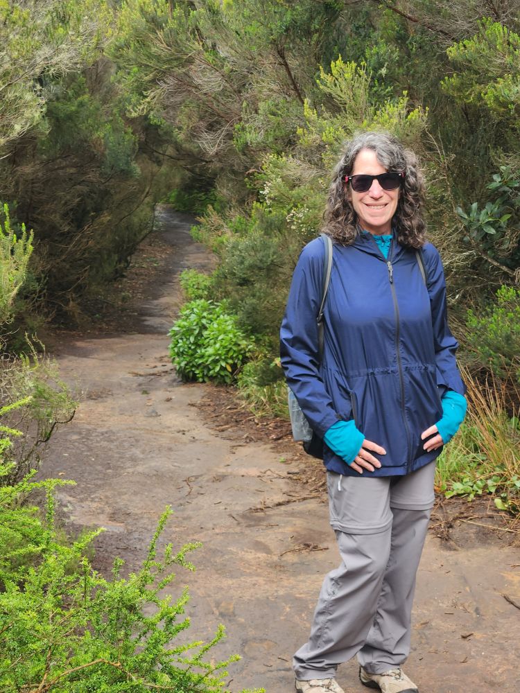 About 30 minutes in we cross the main road through the mountains and begin to descend the other side of the mountain range. And descend we do – so much so in fact that we decide not to complete the whole loop – because what goes down, must come up! And looking at the AllTrails app, it looks like a brutal uphill climb on the other end. We’re good with heading back – and we get some stunning views across the mountains and out to the coastline as our reward for our walk back.