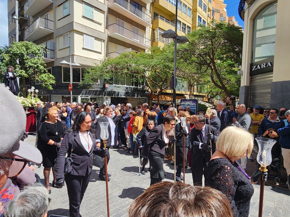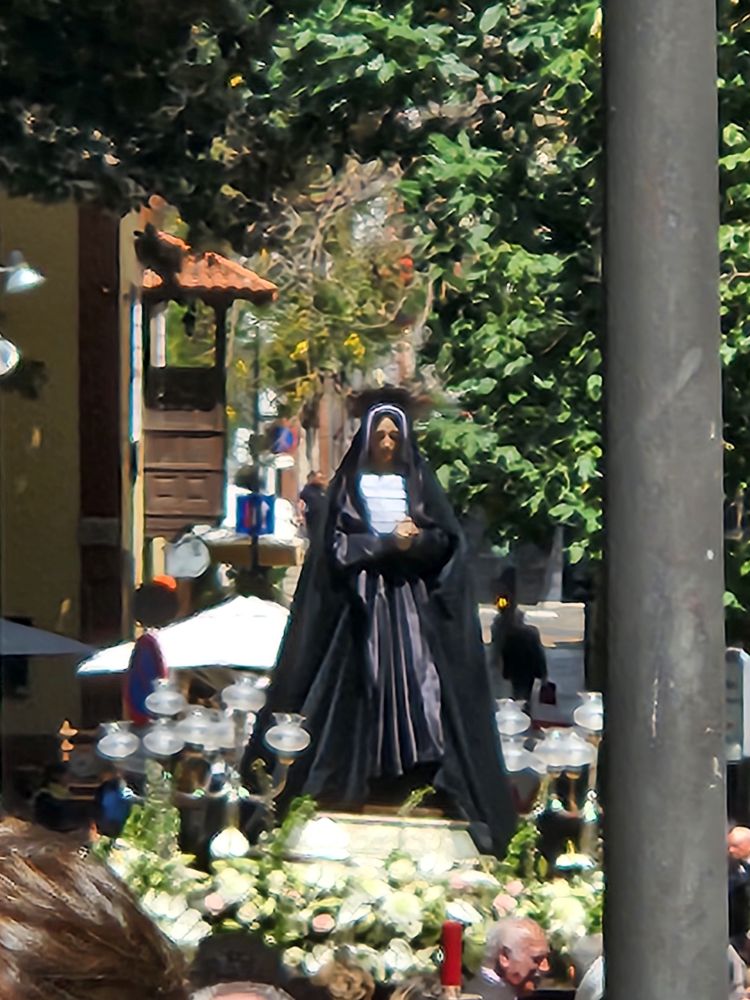 Which is the perfect choice, because as it turns out there are tons of processionals happening in town – both last night and today – for the Easter holiday. We are lucky enough to be in Santa Cruz as the procession from the Parish of St. Fransicso de Asissi passes by – with the Virgin Mary all in black and the accompanying mourners dressed in black as well.