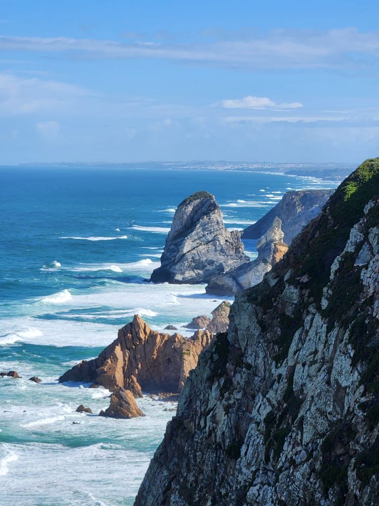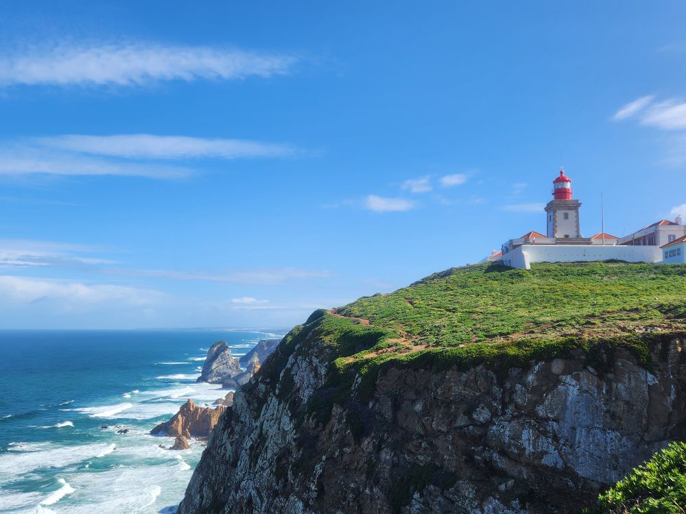 Finally, we are blessedly in the car and out of the airport and on our way through Lisbon and up the coast of Portugal on our scenic tour to Porto. I have a whole route planned with far too many places to stop to visit if we want to make Porto during the daylight, so we begin our little excursion heading to Cabo da Roca, the most Western point in Europe. On the way, we pass through Cascais and Sintra, heading out into the wilder, more undeveloped part of the coastline. About halfway there, we can’t resist stopping for a cappuccino and – of course – our first pastel de nata in this adorable, totally local café called, of all things, Café Caracol (Snail café!!!). Perfect!