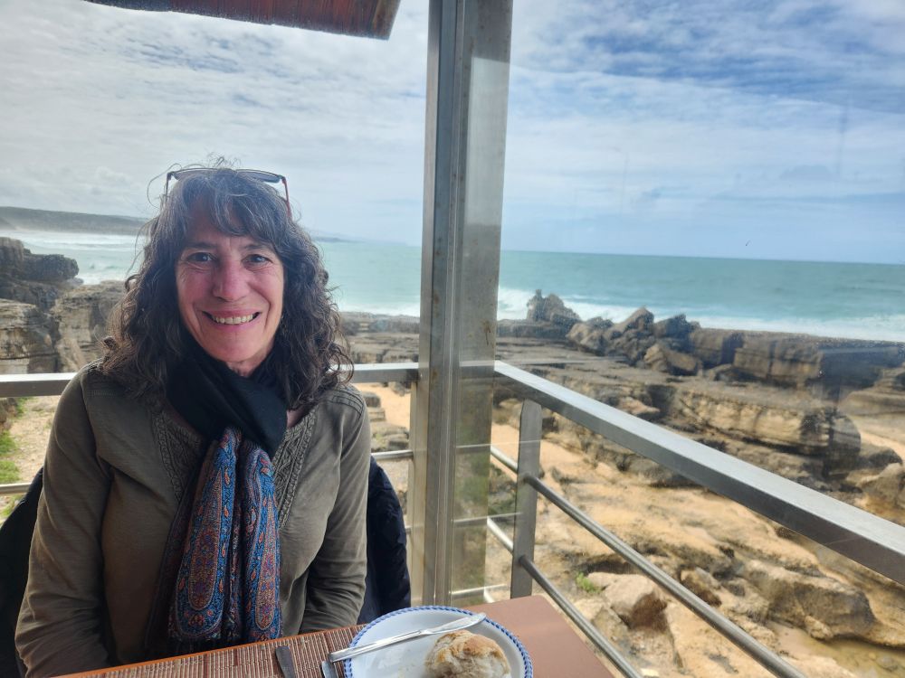 Continuing up the coast, we stop in Azenhas do Mar for more seaside scenery. We were hoping to find someplace to eat here, but it is a bit early and when we investigate driving up into the little White Village, we decide it isn’t worth it – those roads! Plus it is starting to rain, so we continue on our way up the coast, hoping for dryer weather.