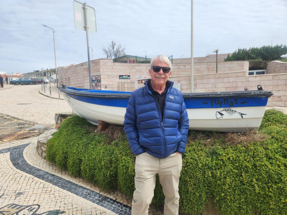 Our next stop is Ericeira, another White Village, but a much larger one. Unfortunately. Because in our efforts to find the lighthouse and fort, we get terribly turned around and then can’t find a legal parking place on the one street we managed to navigate. Even though this is the place for seafood restaurants, and we can see them all around us, we can’t find any place comfortable to park. Sigh. Abort. But aborting isn’t as easy as it sounds because we (the royal we!) still have to navigate through these narrow little cobblestone lanes to get out of the darn village. But – as is frequently the case – this works out to our advantage because as we are nearing the end of the seashore cobblestone lane, there is a parking lot. Eureka! Pull in! And alongside the parking lot? A seafood restaurant – Esplanada Furnas. Lunch time it is!