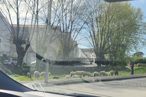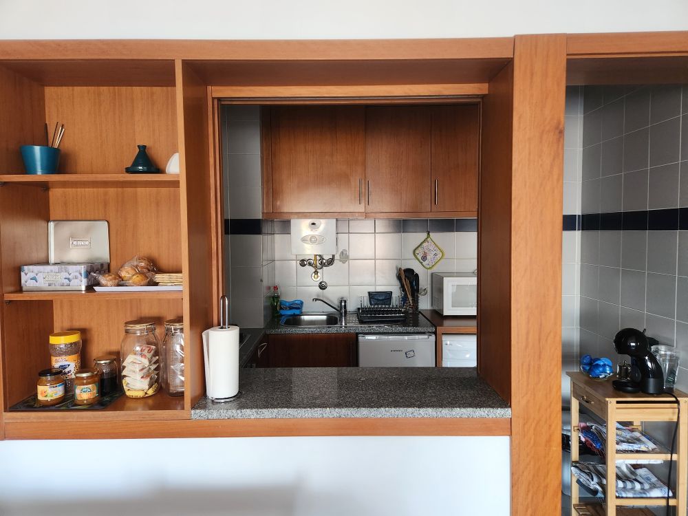 Arriving in Porto – we drive past a shepherd and his sheep – I mean, we’re like 5 minutes from the old city! Then right across the cool bridge and into the old city. The apartment is easy to find, although we have to circle around once because it came up too fast on the other side of the street. Once there, we call Dalila, our host, and she comes down to direct us into the garage. Down 3 floors, through 2 different sets of locked garage doors (yikes!) and into this little teeny space. Yep. Upgrade would not have been a good thing here in this garage. Once situated, we grab our bags and head up to the adorable apartment overlooking the old city. It is a great space with all the amenities – including sweet snacks and breakfast treats. So nice.