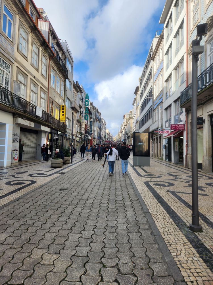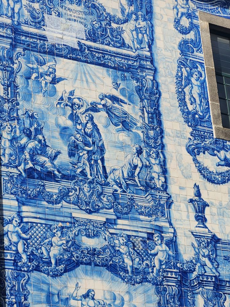 Bags arranged, restroom visited, we strike out into the city to get our bearings. Heading toward the pedestrian shopping street – Santa Catarina (it’s my street!) – we meander about, looking at all the different chain stores and marveling at the Capela Santa Catarina with all the beautiful Azulejos tilework walls.