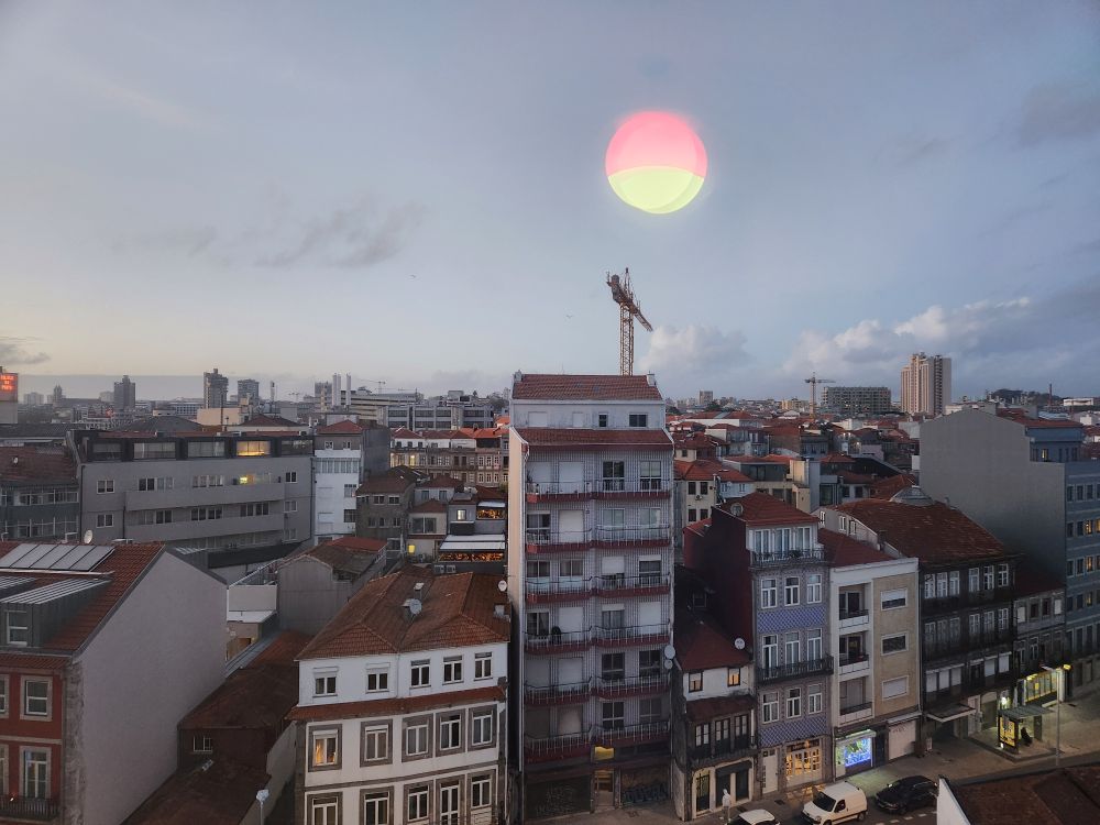 Happily stuffed, we stroll back to the apartment to watch the moon rise and the lights come on over the old city. Tomorrow we shall walk off the Francesinha indulgence.