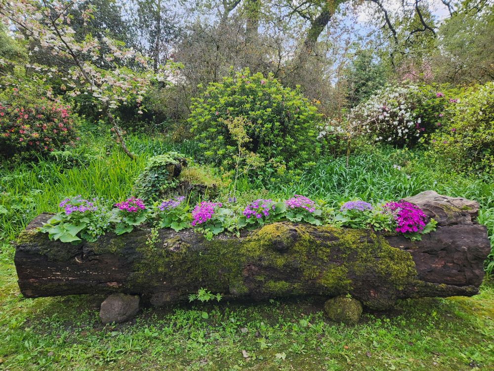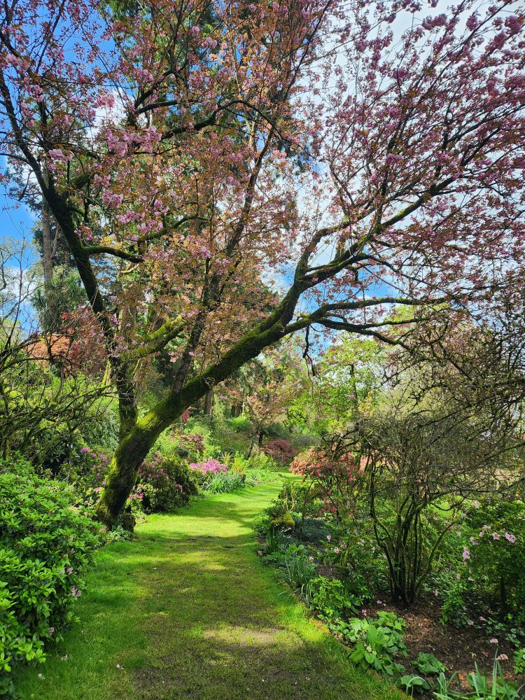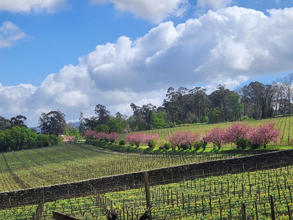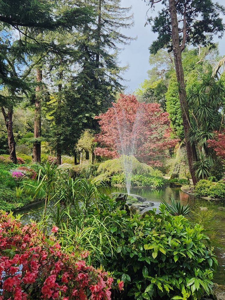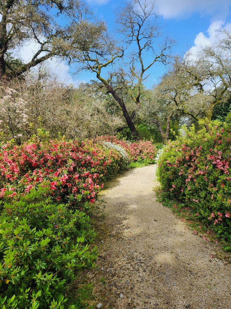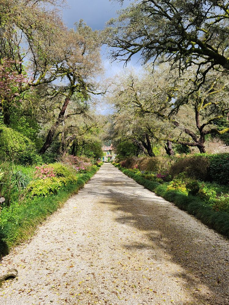 The gardens are just stunning – the 300-year-old Eucalyptus, the Sequoias, all towering above us. Wide landscaped paths lined with trees and flowers, the little ivy-covered guard station and the chapel where the family hosts weddings and parties surrounded by greenery.