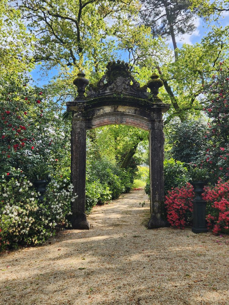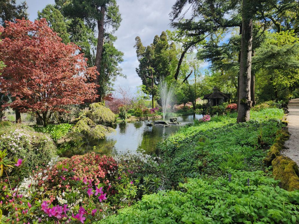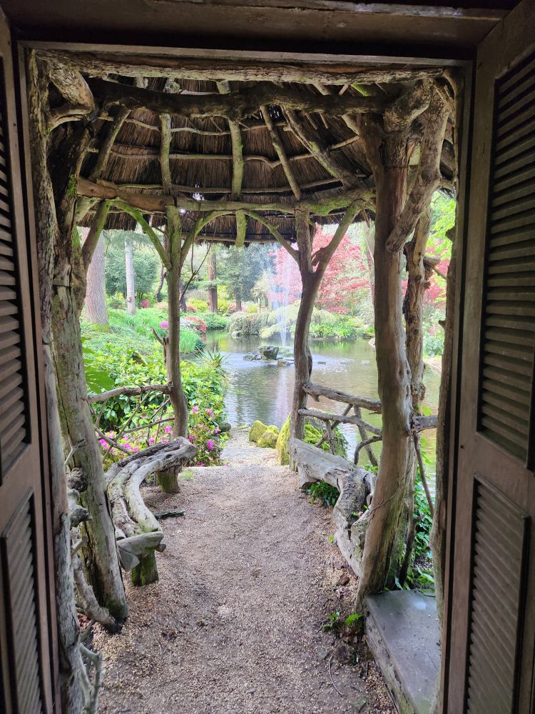 On we go through more beautiful flowering lanes, to the little lake with the tea house in the middle that can be rented for special occasions or booked for a tea in the afternoon. Along the way Cristina becomes our photographer – framing pictures in the best spots – she’s good! And continuing her living history of the vineyard and the gardens.