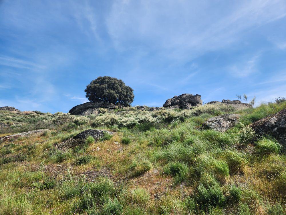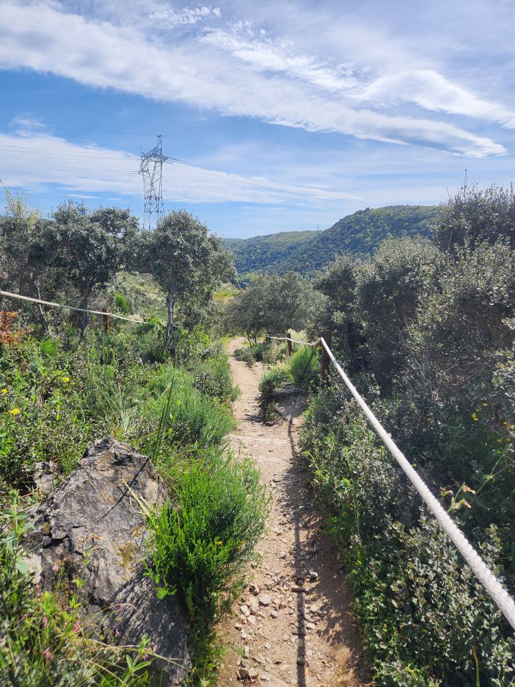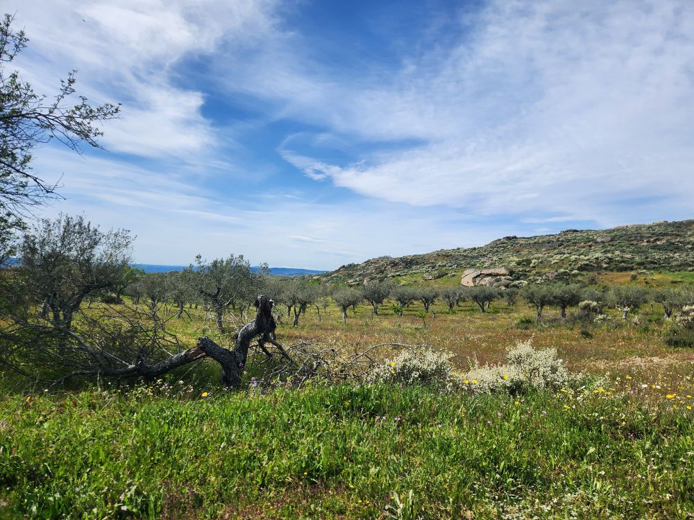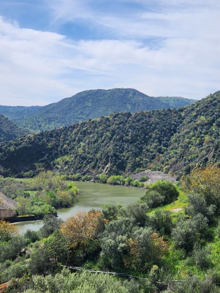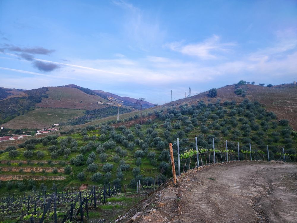 The more inland we go, the more the scenery changes. We go from 100% vineyards to occasional vines mixed in with tons of olive tree groves, lots of scrub and lots of rocks. And along the way, somewhere – who knows where – we’ve switched to following the Sabor river. Albeit high above the banks on the winding mountain road.