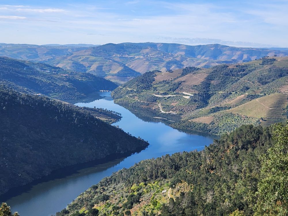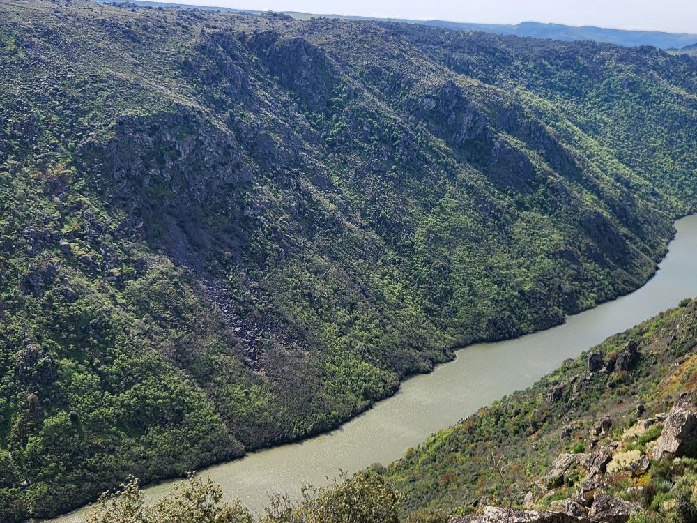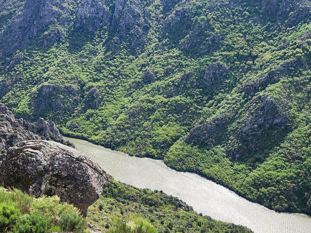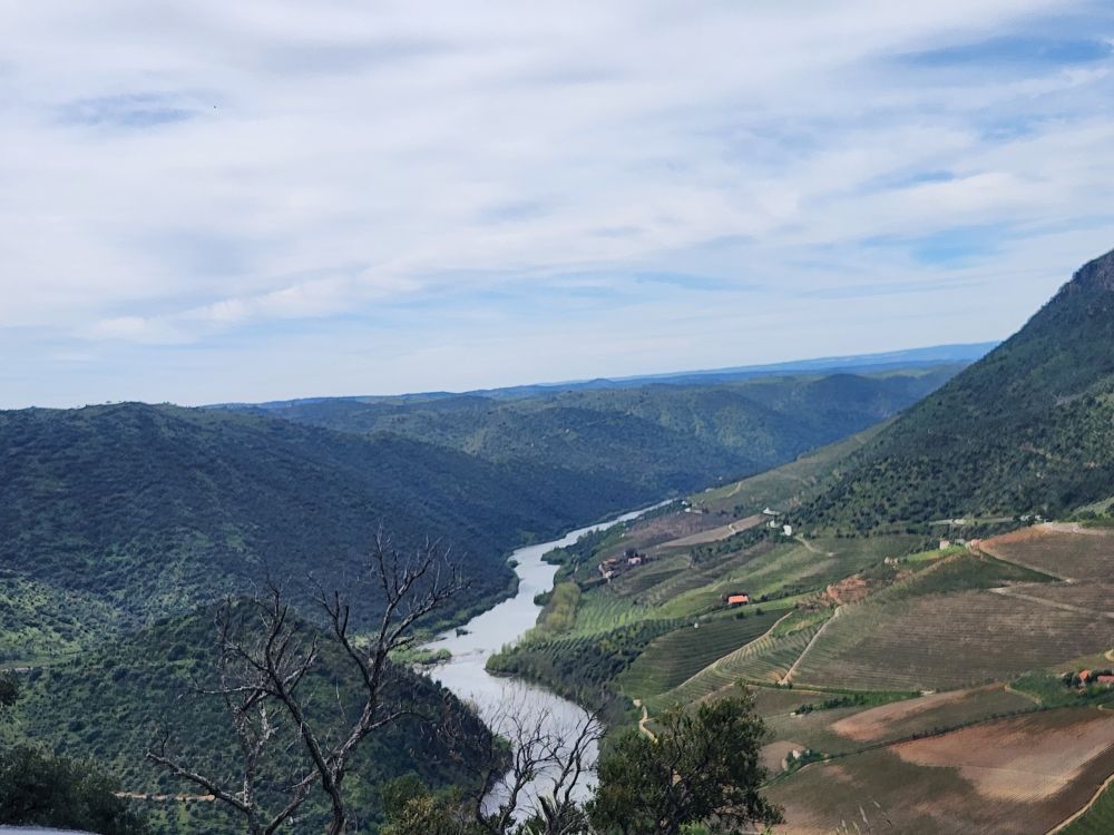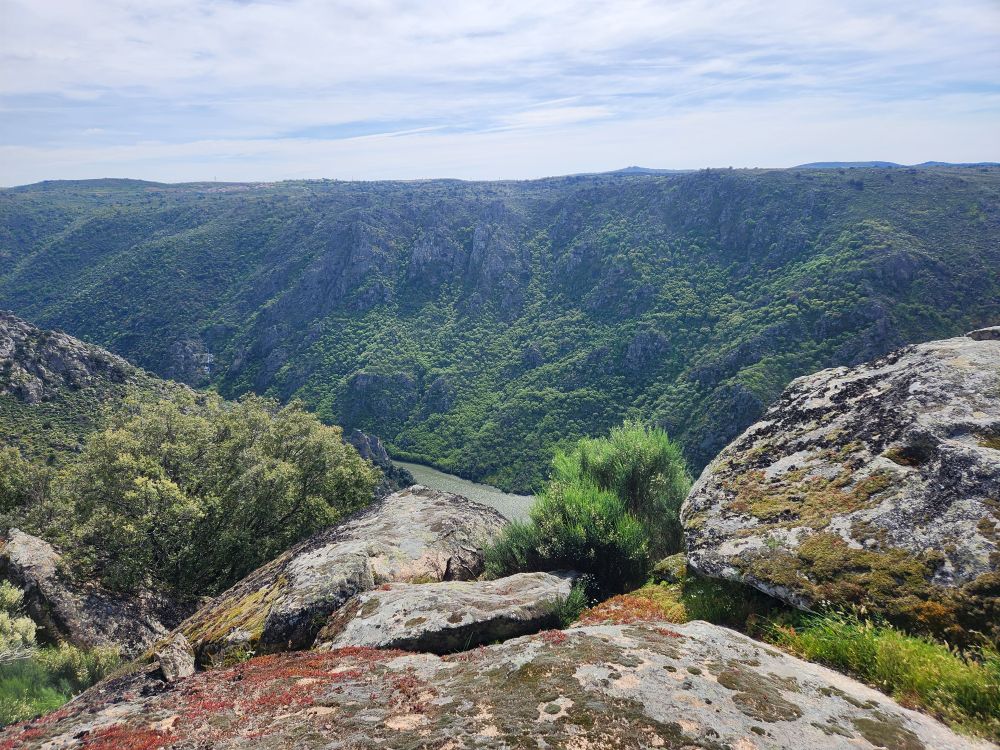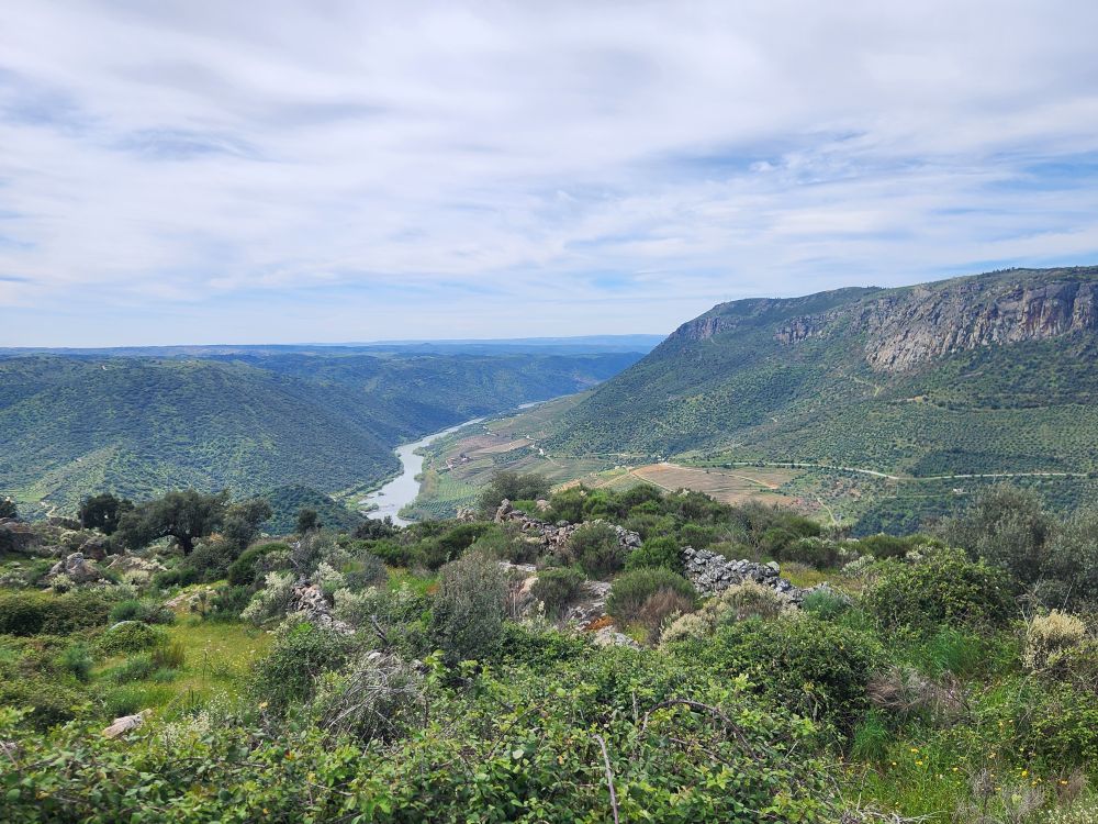 The challenging road was absolutely worthwhile for this view. The river is gorgeous way, way, way down below us. The rocks, the trees, the geography couldn’t be better. We spend quite some time just wandering around, gazing at the Douro and Spain and reveling in the solitary beauty.