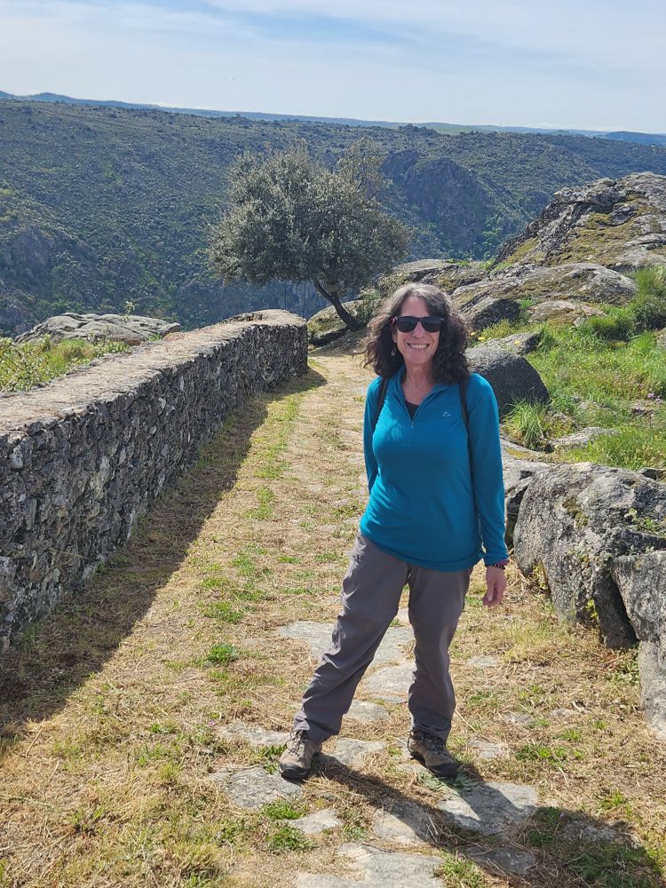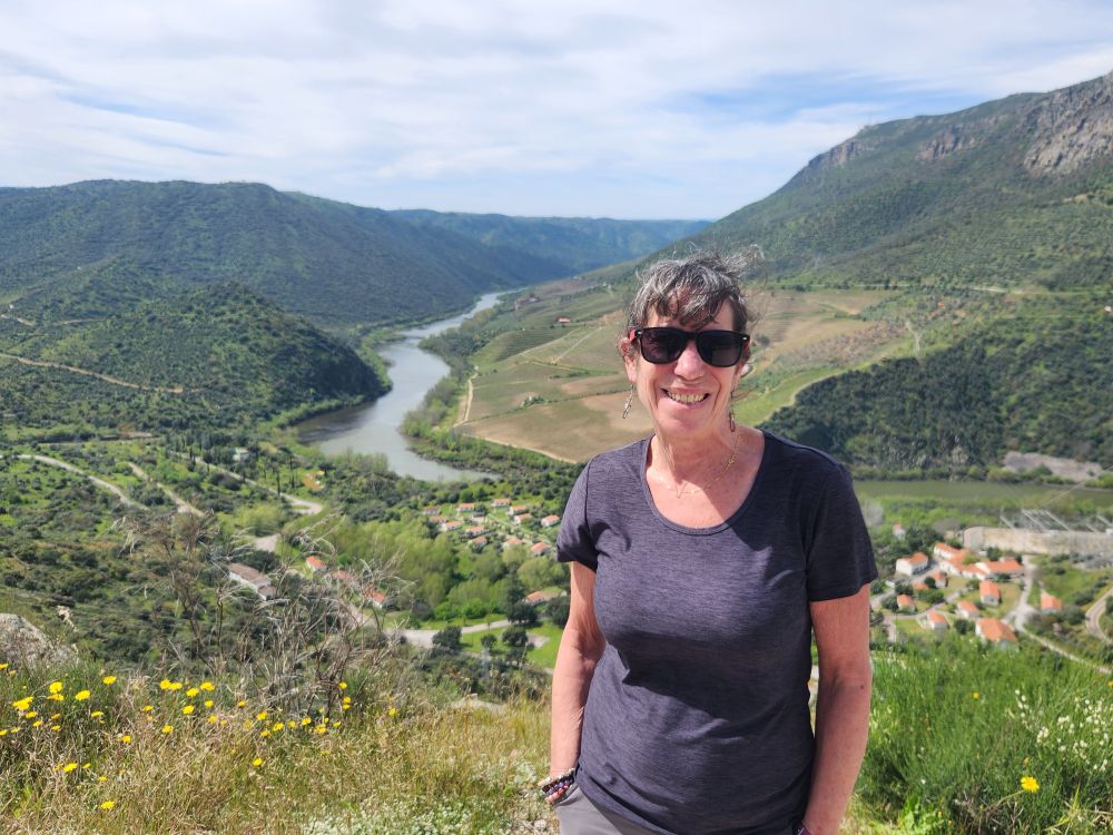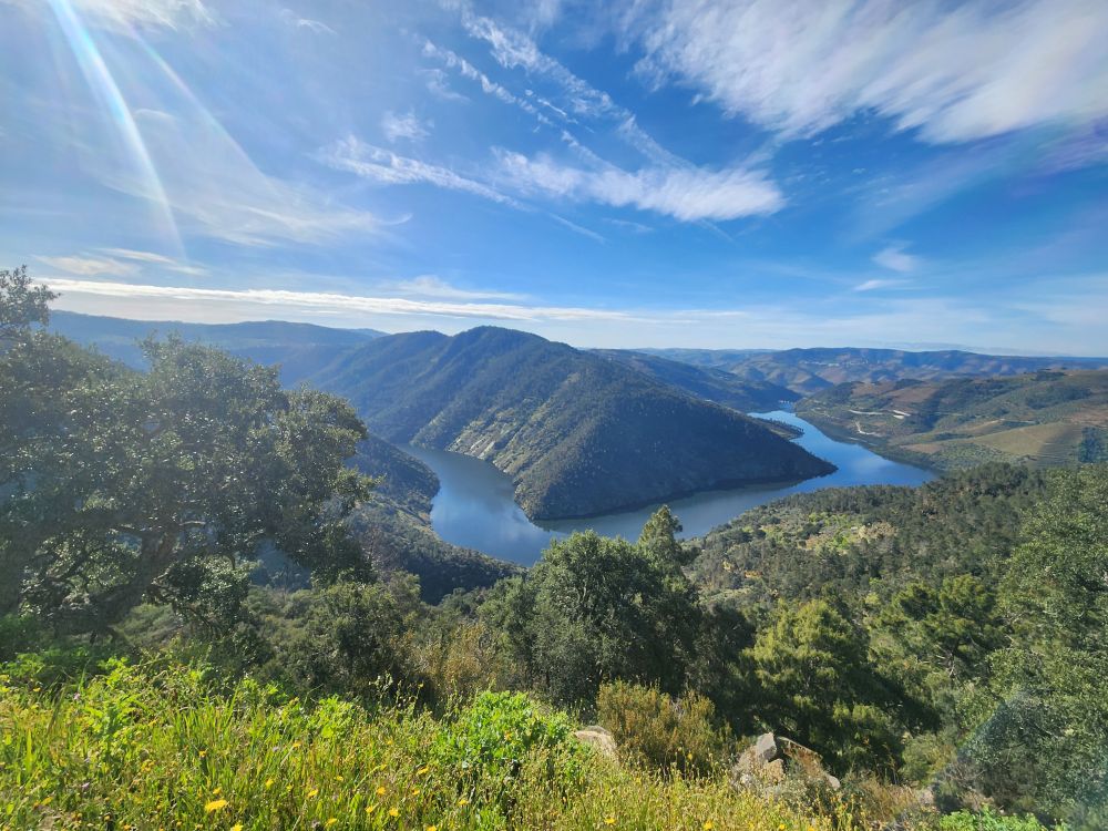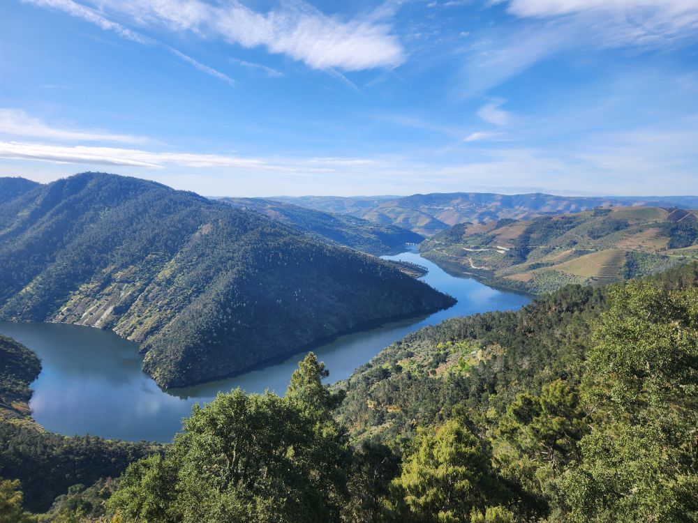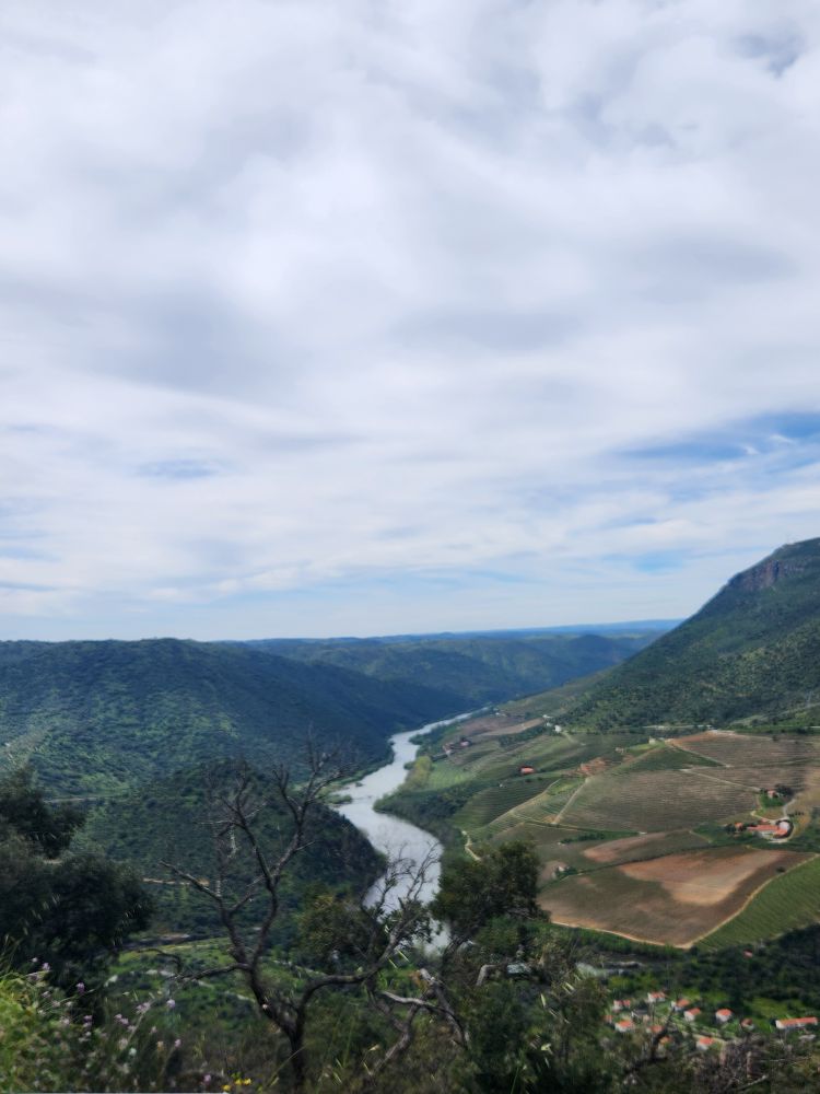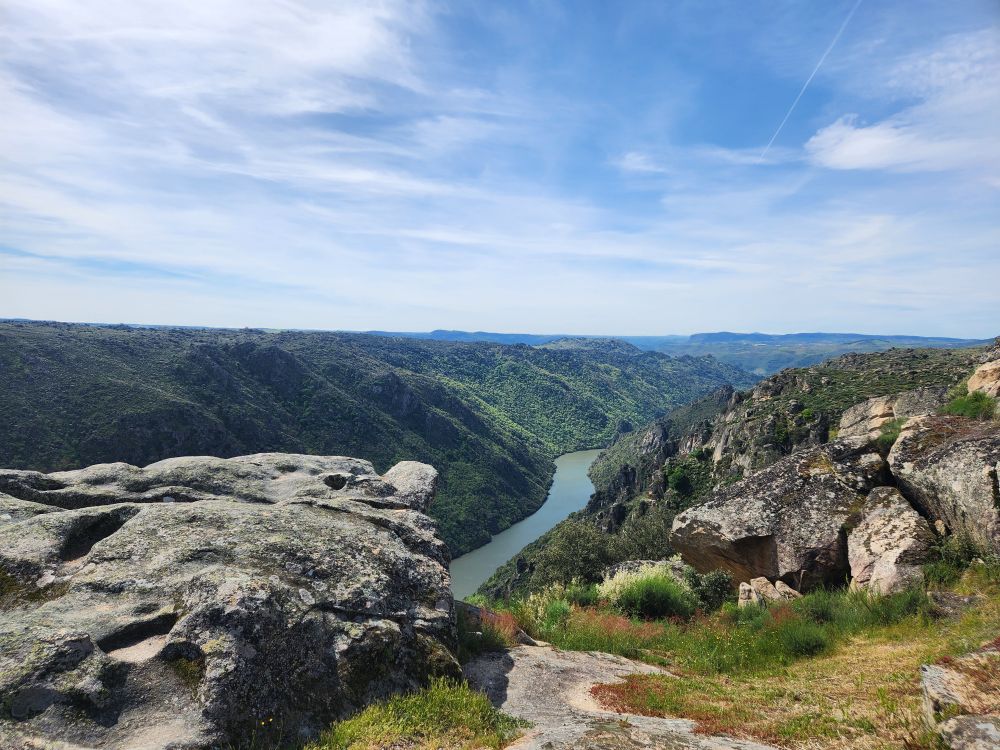 The challenging road was absolutely worthwhile for this view. The river is gorgeous way, way, way down below us. The rocks, the trees, the geography couldn’t be better. We spend quite some time just wandering around, gazing at the Douro and Spain and reveling in the solitary beauty.